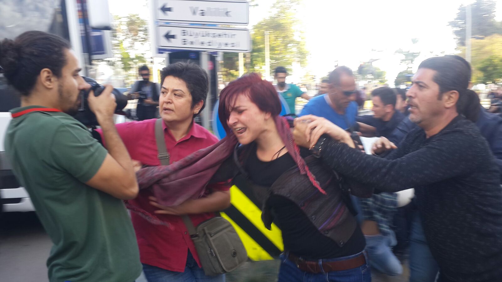 Members of the organizing committee entered into negotiations with the police after officers said they would not permit the march, only for the police to remove their barricades at 14.20, allowing the march on Cumhuriyet Square to continue.