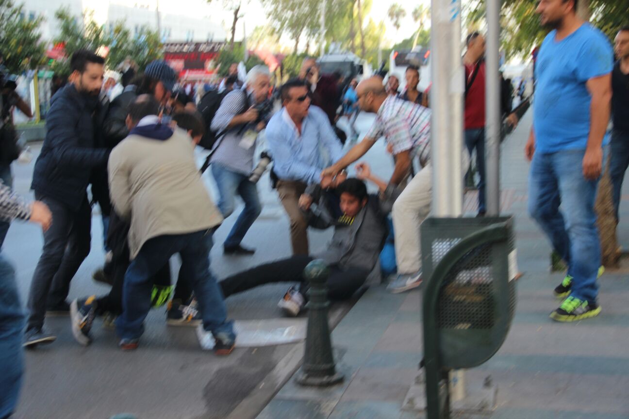 The activists, who sought to march on Cumhuriyet Square, were subsequently attacked by police at a checkpoint.