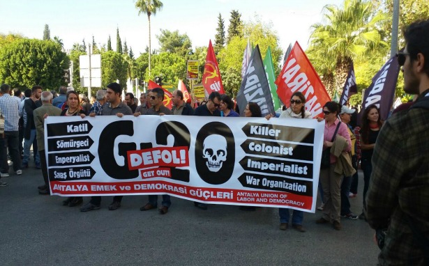 The Forces of Labor and Democracy of Antalya have marched on the southern province’s Cumhuriyet Square, demanding the departure of the ‘murderous, colonialist and imperialist war organization’ that is the G20