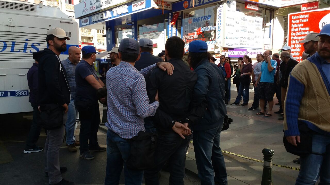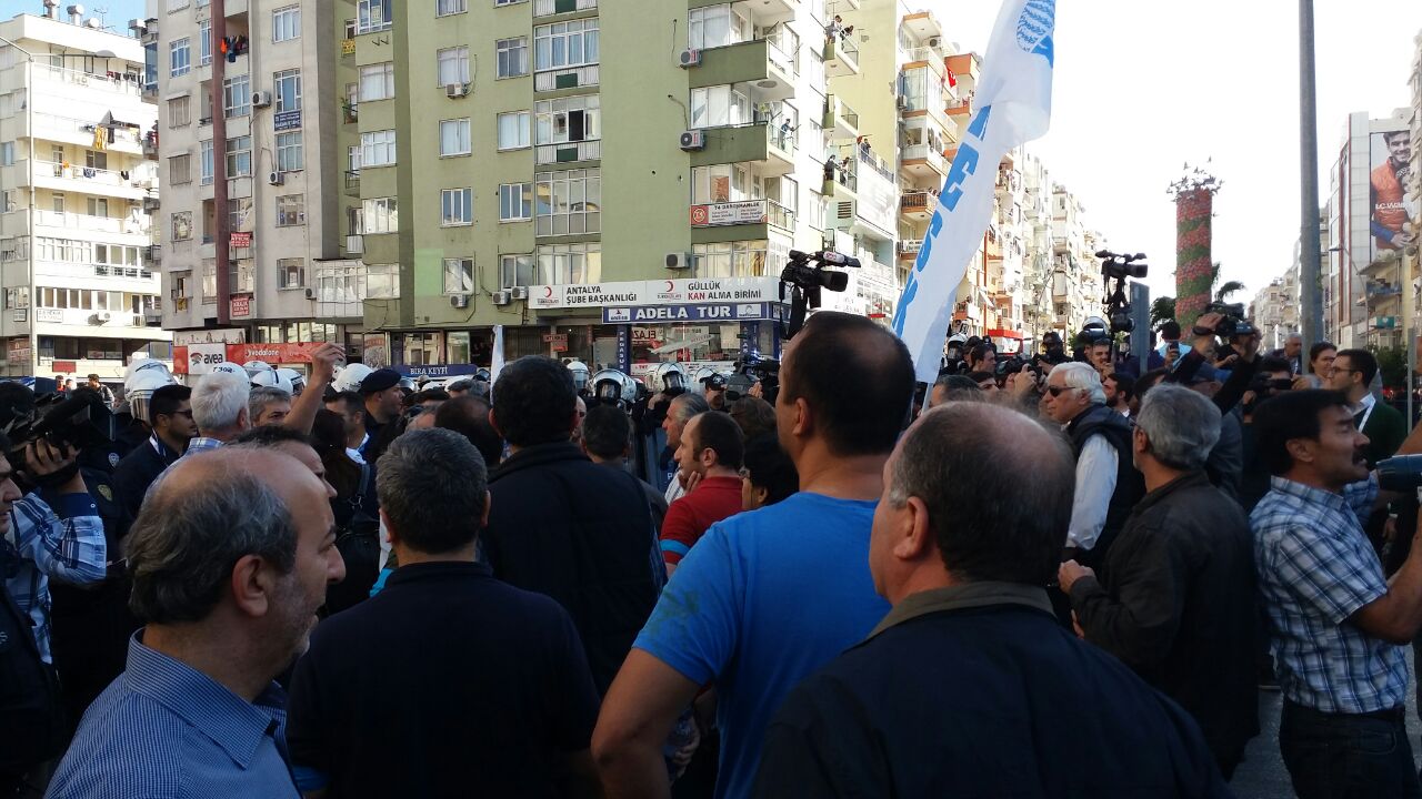 Activists arriving on a bus from Bursa, Eskişehir and Kocaeli were also halted at the entrance to Antalya. Following an identity check, Halkevleri member Ahmet Keskin was taken into custody.