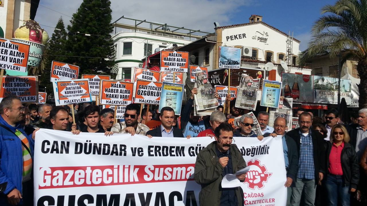 Çağdaş Gazeteciler Derneği’nin (ÇGD) çağrısıyla ve demokratik kitle örgütlerinin katılımıyla Attalos Meydanı’nda yapılan basın açıklamasını ÇGD Akdeniz Şubesi başkanı Mustafa Sözen okudu. Sözen basın açıklamasında “Bu haberlerin yayınlanması suç değil tersine bir gazetecilik görevidir. Bu meslektaşlarımızın haberleri nedeniyle sorumlu yetkililerin yargılanması gerekirken, tersi oldu ve basın ve ifade özgülükleri hiçe sayılarak meslektaşlarımız ağır suçlamalarla hakim karşısında çıkmak zorunda bırakıldı” dedi.