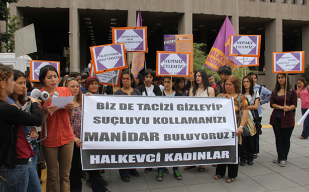 Olay 26 Haziran akşamı oldu. Gözaltına alırken ve gözaltı süresi boyunca cinsel tacize maruz kaldım. İfade verirken hem devlet tarafından suçlu görülen bir kişi hem de devletin polisinden şikayetçi biri olarak ifademi verdim. Bunun ardından kadın avukatlarla ve Halkevci Kadınlarla birlikte bir suç duyurusunda bulunduk. Suç duyurusunda bulunmamızın ardından Ankara Emniyet Müdürlüğü kendi sitesinden bir açıklama yaptı. Bu açıklamada “Eylem K. adlı şahıs daha önce üç defa gözaltına alınmıştır ve her gözaltında da taciz iddiasında bulunması manidardır” dedi. Bunun üzerine bir kez daha basın açıklaması yaptık kadın arkadaşlarla. Elbette bana “manidardır” diyeceklerdi. Çünkü mağduriyeti yaşayan bir kadını sırf örgütlü olduğu için teşhir edeceklerdi.