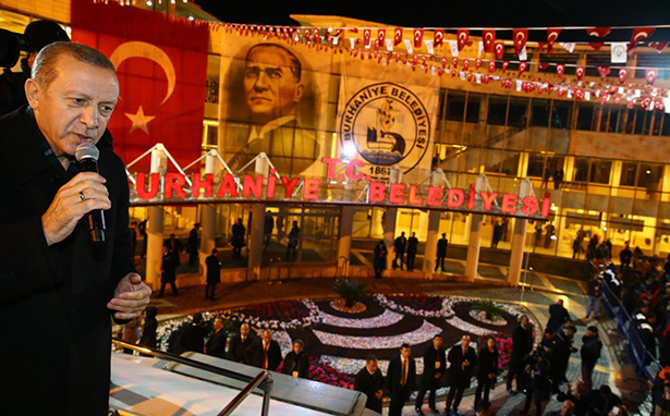 Tayyip Erdoğan, Balıkesir’in Burhaniye ilçesinde belediye başkanlığını ziyareti öncesinde belediye binası önünde konuştu.