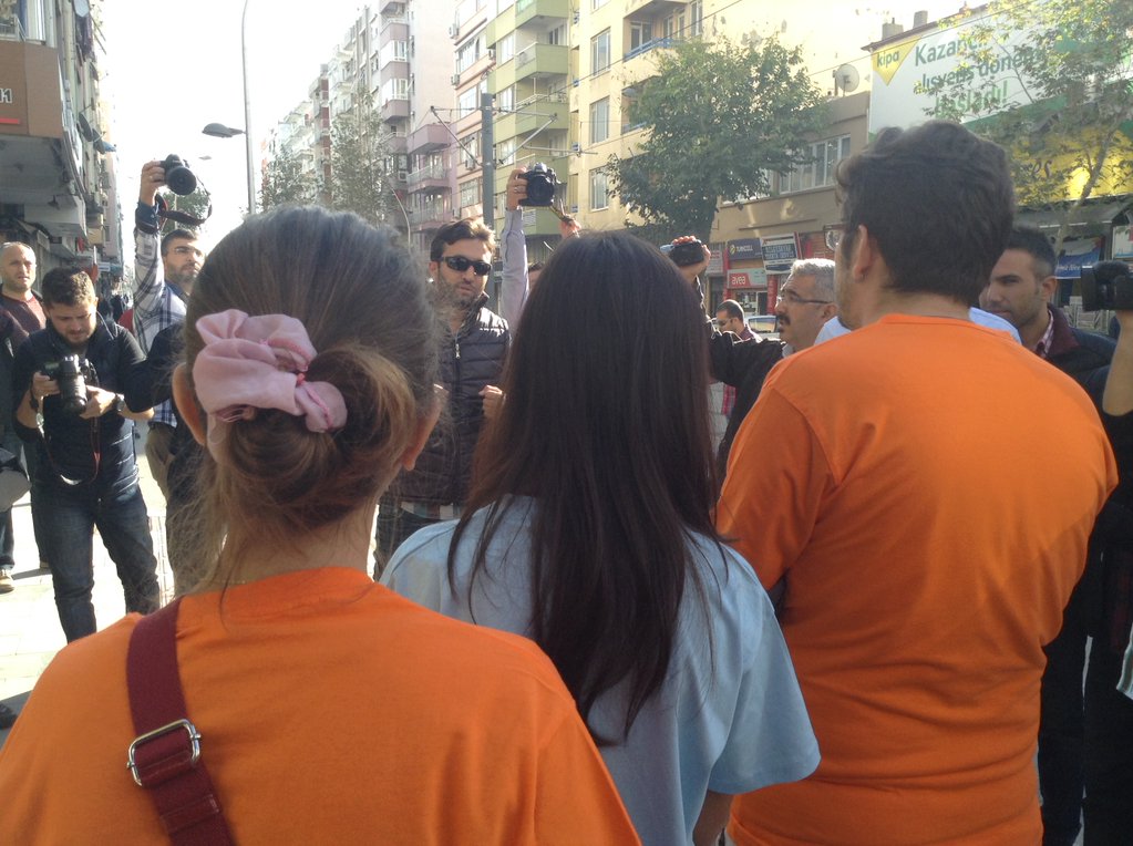 Mektubu okuduktan sonra yürüyüşe başlayan Halkevleri üyeleri ve Öğrenci Kolektifleri’nden üniversiteliler Doğu Garajı mevkiinde polisler tarafından durduruldu. Yürüyüşçülerin yola devam etmesine izin vermeyeceğini söyleyen polise seyahat haklarını kullandıklarını belirterek yollarına devam etti. Polis yürüyüşçülerin önünü bir kere daha keserek yürütmeyeceklerini ve “yasaklı” bölgede bulunduklarını belirtti. Bunun üzerine yürüyüşçüler bu bölgenin yasaklı bölge olmadığını ifade ederek tekrar yola devam etti.