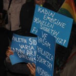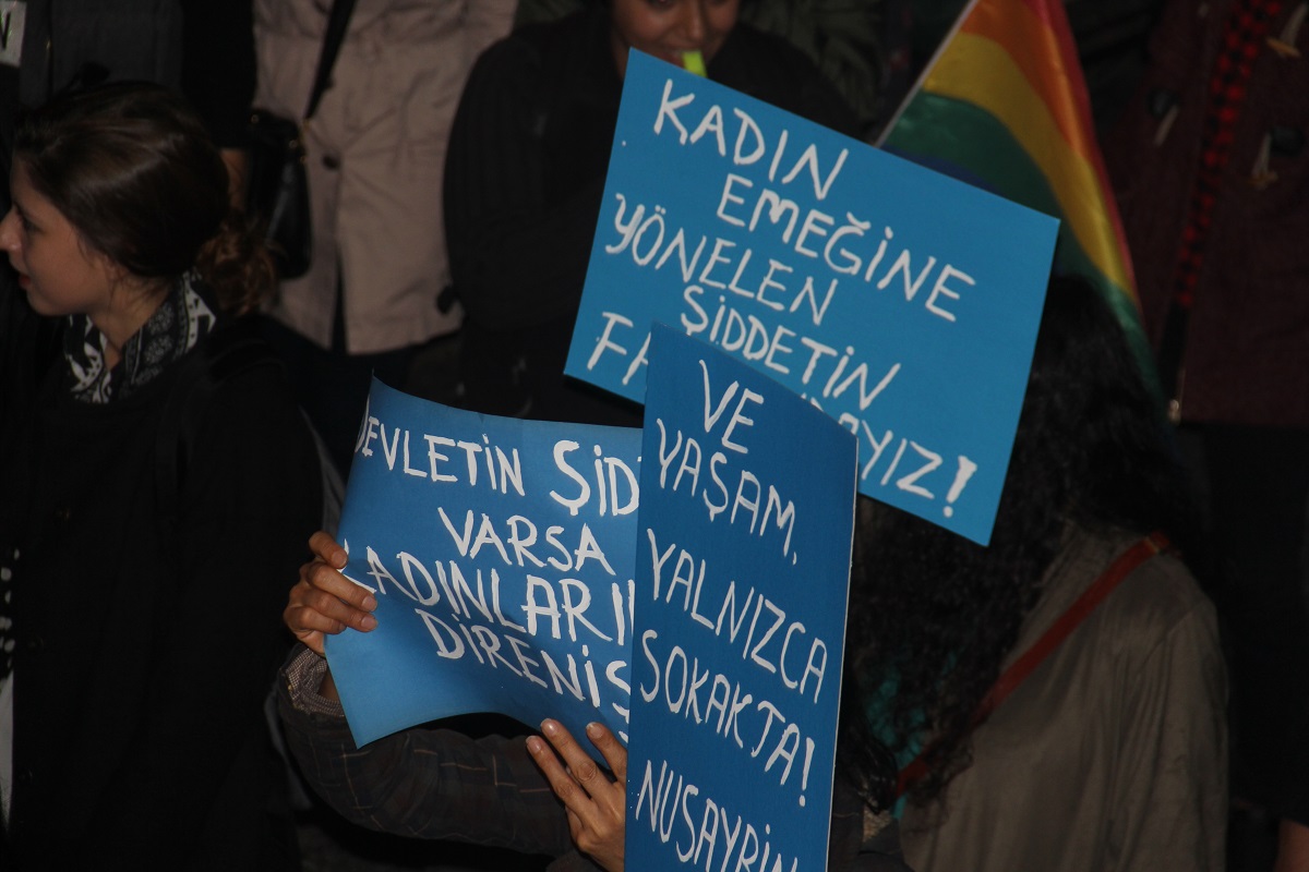 2015’in ilk 10 ayında en az 236 kadının öldürüldüğünü hatırlatan kadınlar, “Bizler ‘Hayır!’ dediğimiz, boşanmak istediğimiz, savcılığa şikayette bulunduğumuz, erkek şiddetine karşı bağırdığımız için yaşamlarımızın her alanında ölümle karşı karşıya kalıyoruz. Eşitliği fıtrata ters gören, kadın düşmanı politikalarıyla AKP iktidarına karşı bizler, sadece ‘eşit’ koşullarda yaşam hakkına sahip olabilmek için hayatımızın her anında savaşmak zorunda bırakılıyoruz” dedi.