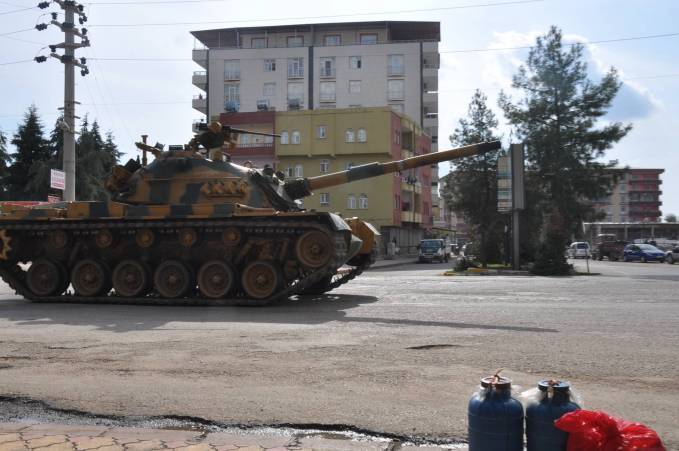 Turkish state started sending tanks to the city of Silvan. While the police and special forces try to penetrate the neighborhoods defending themselves from the invasion, an armored construction vehicle was destroyed by the people as it tried to enter their streets. To prevent the fatal police invasions people dig trenches. Police in return bring armored construction vehicles to close the trenches and attack homes. After the destruction of the police vehicle, Turkish military canons stationed across the town in the hills began artillery fire against the neighborhood.