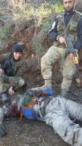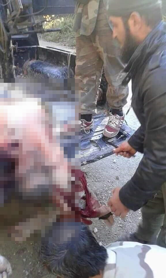 Sağdaki fotoğrafta ise cihatçı çetelerin Rus pilotun cesedinin üzerine basarak “zafer pozu” verdiği görülüyor.