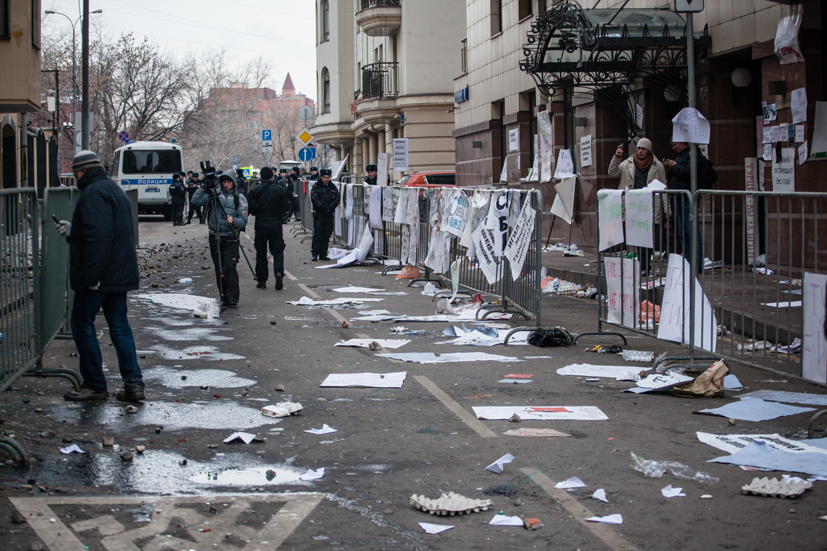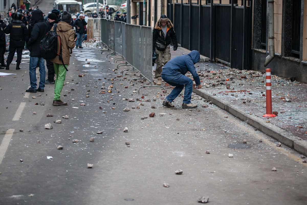 Sputnik’in aktardığına göre, Interfax’a konuşan Türkiye’nin Moskova Büyükelçiliği Basın Sekreteri Orhan Gazigil, göstericilerin büyükelçilik binasına taş atması sonucu ikinci ve üçüncü kattaki camların kırıldığını, taşların ofislerin içine düştüğünü açıkladı. Büyükelçilik personelinin koridorda dolaşmaya çekindiğini aktaran Türkiyeli diplomat “Yaralananlar olabilir, bu bilgi henüz kesinleştirilmedi” dedi.