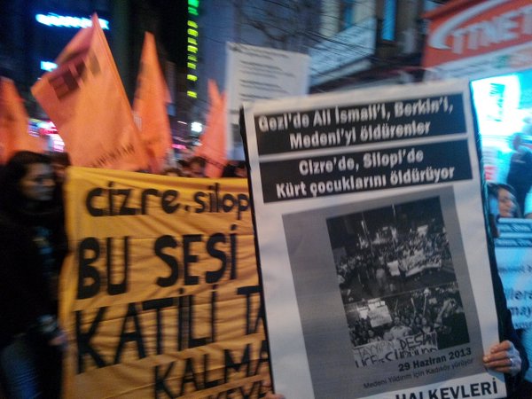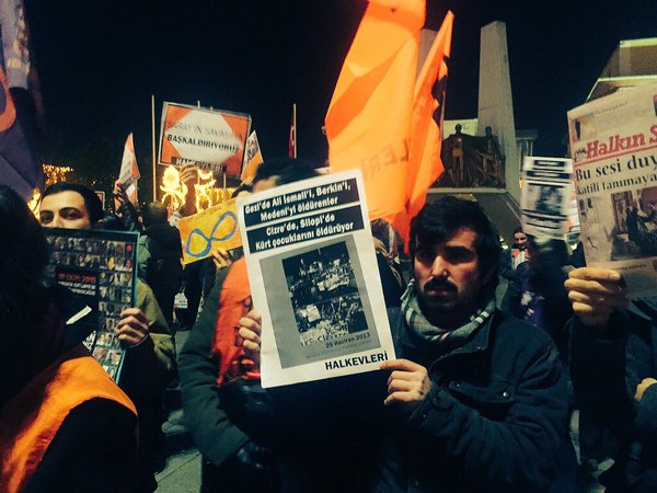 Beşiktaş Kartal meydanında buluşan Halkevciler, sloganlarla çarşı içinde gezdi. İstanbul’dan Sur, Cizre, Silopi ve Nusaybin’e selam gönderilen ses çıkarma eyleminde “Cizre’de kurulan barikatlar; Gezi’de Beşiktaş sokaklarında AKP faşizmine karşı kurulanlarla aynıdır!” diyerek Kürt halkının direnişine sahip çıktı.