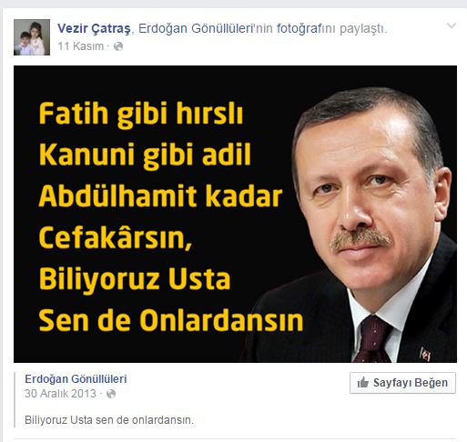 Akşam saatlerinde ise köprüde intihar girişiminde bulunma rolü yapan Çatraş ile ilgili ayrıntılı bilgiler ortaya çıktı. Çatraş’ın Facebook sayfasında Tayyip Erdoğan ve AKP’yi öven “Erdoğan gönüllüleri” sayfasından çok sayıda paylaşım yaptığı, Kılıçdaroğlu ve Demirtaş hakkında hakaretler içeren görseller paylaştığ görüldü. Çatraş’ın 1 Kasım seçiminde oy pusulasında AKP’ye oy bastığı görseli de paylaşması dikkat çekti.