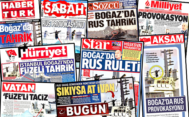 AKP, Musul hamlesinden hızla geri basınca savaş medyasındaki Musul propagandasından eser kalmadı. Yerine; üç gün önceki Rus gemisi gelişmesi ısıtıldı, 18 gazete aynı manşetle çıktı