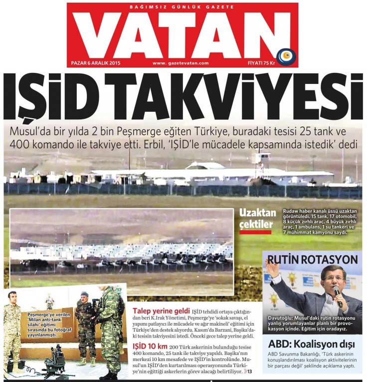 AKP’nin savaş sevkiyatında hızla geri basmasıyla egemen medyanın Musul propagandasının ömrü de hayli kısa sürdü. Dün (6 Aralık) manşetlerini tank-komando resimleri ve haritalarla süsleyen gazetelerin manşetlerinden eser kalmadı.