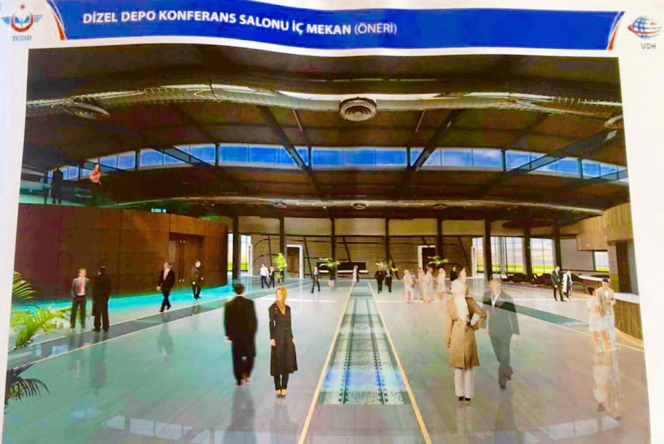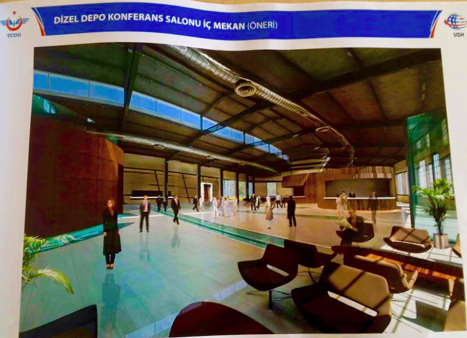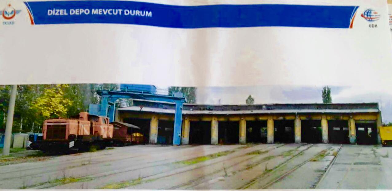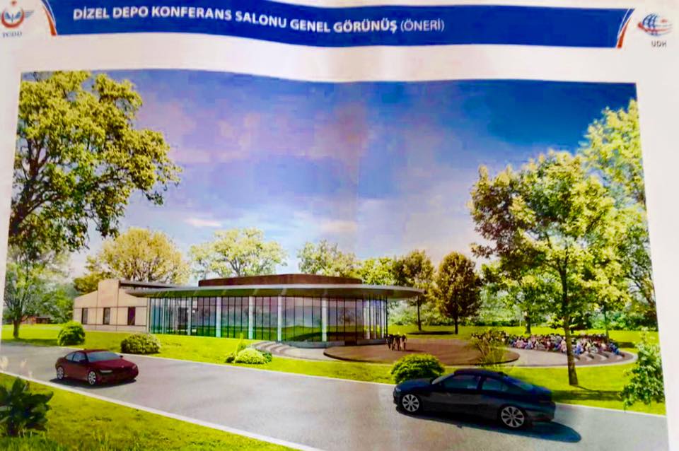 Haydarpaşa Garı’nın Dizel deposunun mevcut durumu ve önerilen planı. Planda dizel deponun etrafı yeşil alan haline getirilerek trenlerin bulunduğu alan ortadan kaldırılıyor: