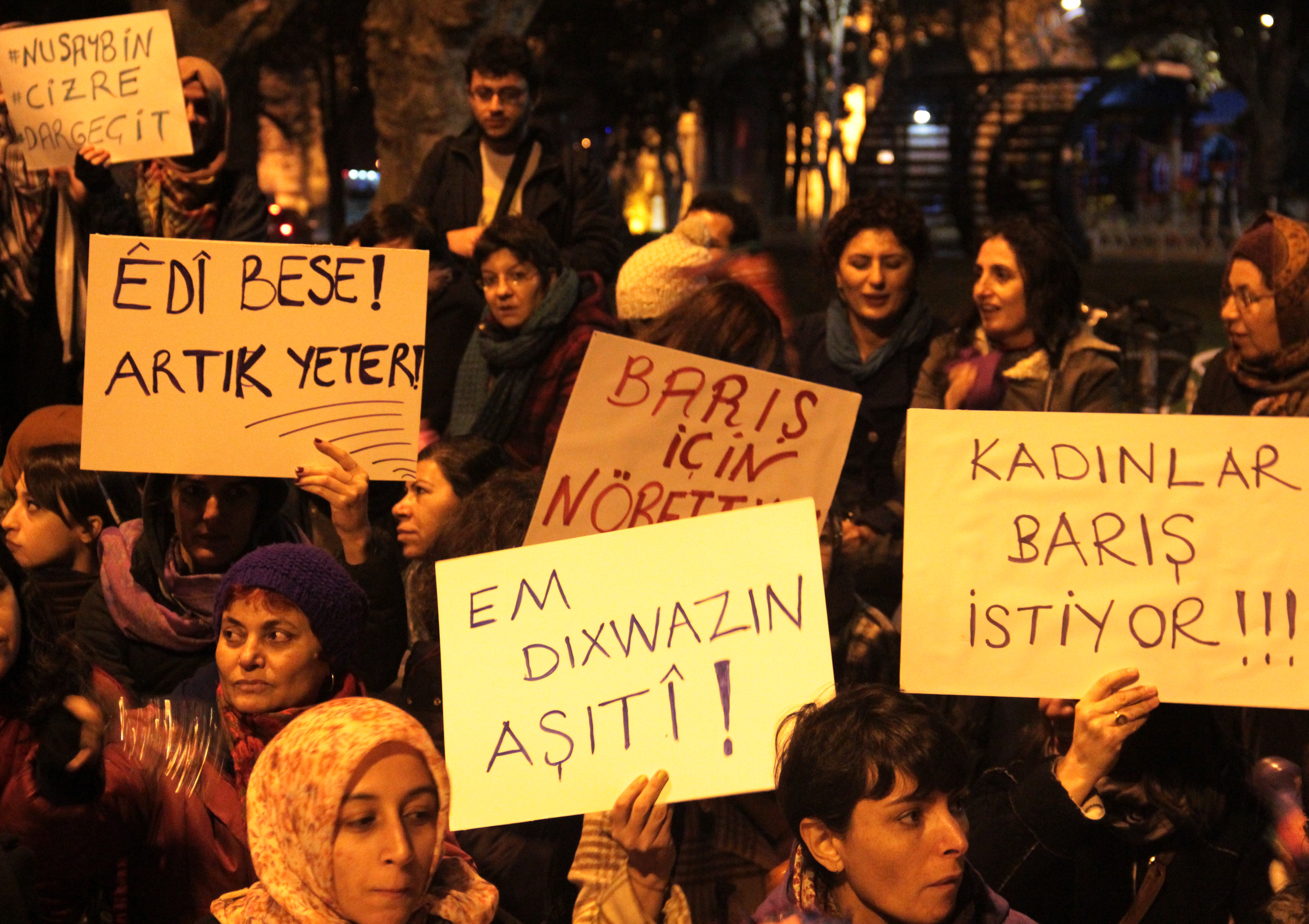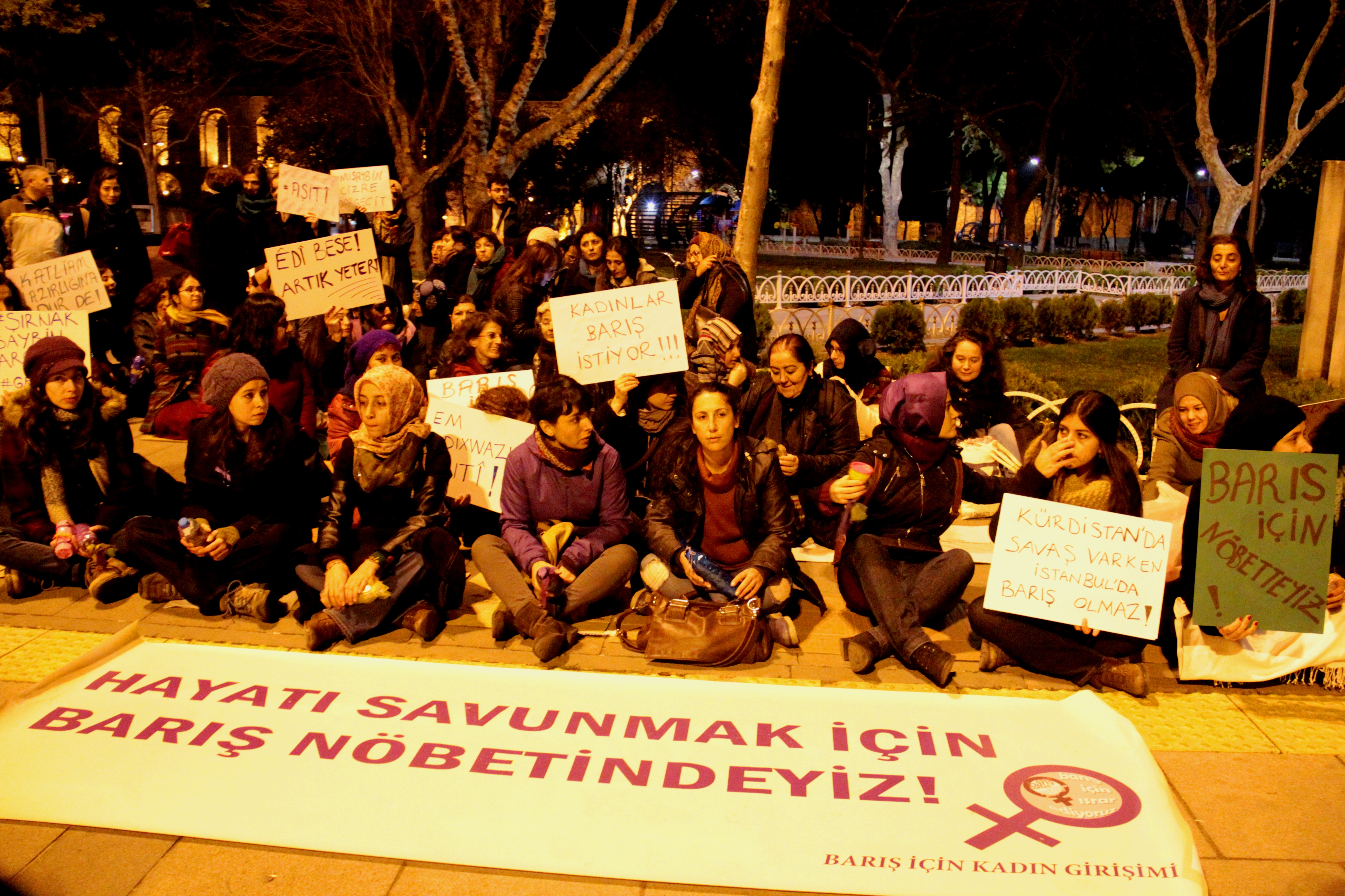 Barış İçin Kadın Girişimi, Kürt illerinde yaşanan katliam, abluka ve operasyonlara karşı başlattığı barış nöbetinin üçüncüsünü bugün Fatih Saraçhane Parkı’nda tuttu