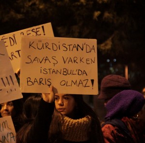 Savaş ve katliamlara karşı ses çıkaran kadınlar, ‘‘Savaş sürdükçe bizlerin de ‘güvende’ veya özgürce yaşaması mümkün değil.’’ dedi. HDP İstanbul Milletvekili Pervin Buldan’ın da katıldığı eylemde çevreden geçen kimi araçlarda korna çalarak eyleme destek verdi