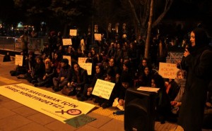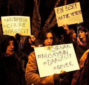 BİKG üyesi Nebiye Arı, artık katliamlara sessiz kalmaya tahammül edemeyen herkesi barış nöbetlerini sahiplenmeye çağırdı. “Günün adı: Sur, Dargeçit, Nusaybin, Silopi, Cizre” diye konuşan Arı, Kürt illerinde yaşananlara dikkat çekti. Arı, “Artık ölüm nerede, ne zaman, nasıl bulacak diye beklemeye tahammülümüz yok” dedi. Barış İçin Kadın Girişimi’nin Cizre ve Silopi’ye yaptıkları ziyaretin notlarını paylaşan Nebiye Arı, “Oradaki kadınlardan dinlemiştik ablukayı. Şimdi aynı kadınlar bize ‘Cizre’yle başladılar, Cizre’yle bizi yok ederek bitirmek istiyorlar’ diyor. Peki Ne yapacağız” diye sordu.