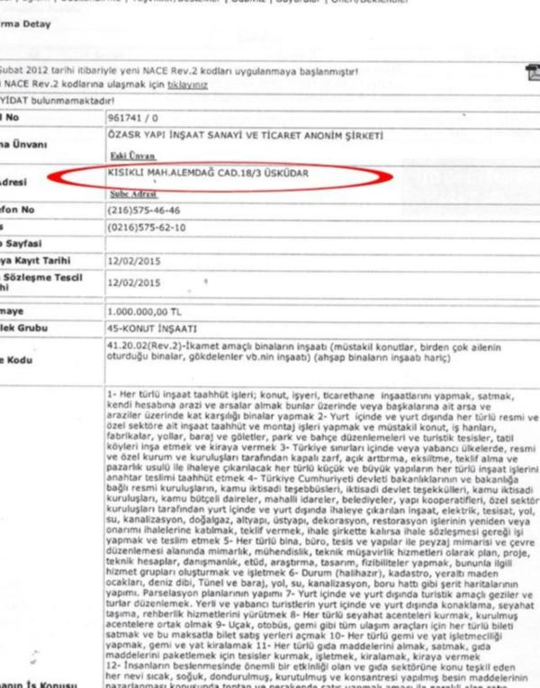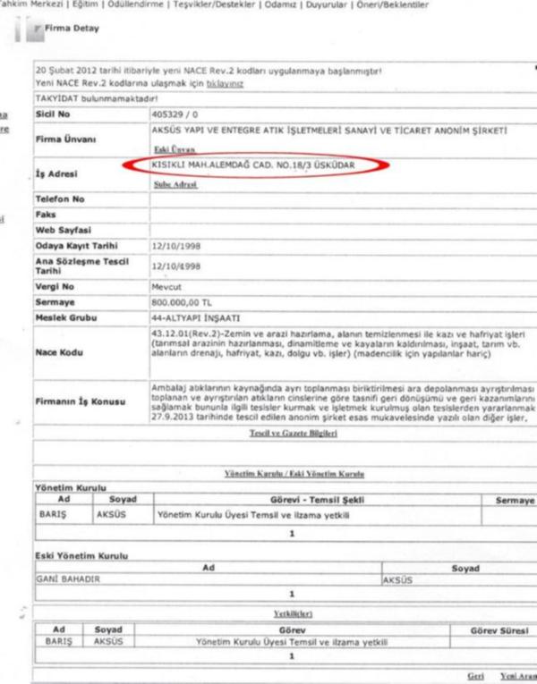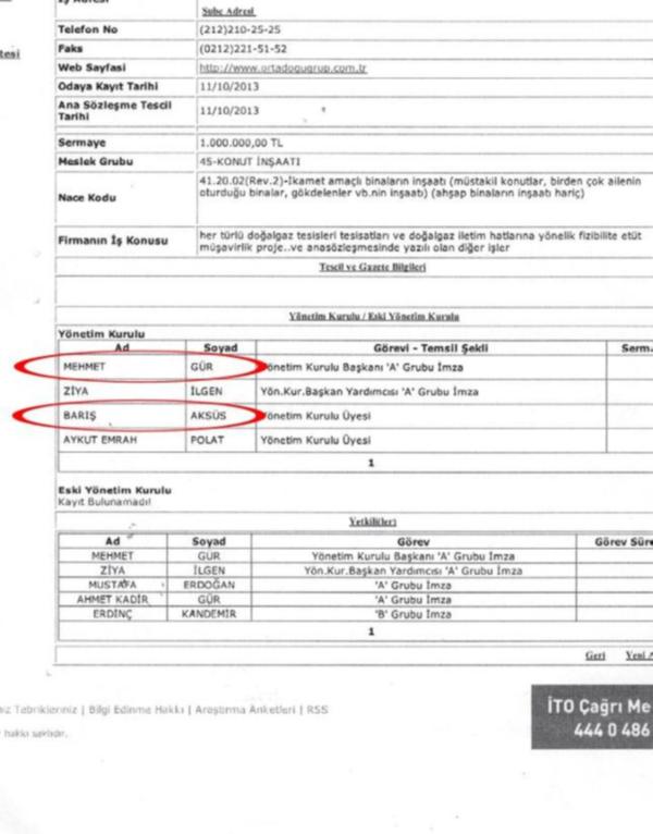 Mehmet Gür ile Bilal Erdoğan’ın ortak olduğu BMZ şirketinin birlikte kurduğu inşaat şirketinde Bilal Erdoğan’ın amcası Mustafa Erdoğan ve eniştesi Ziya İlgen’in de imza yetkisi bulunuyor. Bu şirket içinde yer alan ve Bilal Erdoğan’ın imam hatipten sınıf arkadaşı olan Barış Aksüs’ün bir başka inşaat şirketi ise Gür’ün arsayı aldığı şirketle Kısıklı’da aynı adresi paylaşıyor.