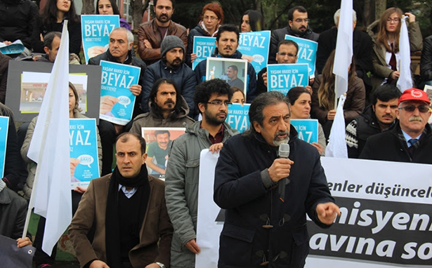 Dr. Mehmet Kaya yaptığı konuşmada; “Barış talebimizi duyurmak için gerçekleştirdiğimiz Beyaz Nöbet’in 5. Günündeyiz. Bugünkü nöbetimizin ayrı bir önemi var. Bu sabah barış için girişimde bulunan akademisyenlere yönelik gözaltılar başladı. Bu hukuksuz duruma yönelik olarak kurum temsilcileri düşüncelerini ifade edecekler” dedi.