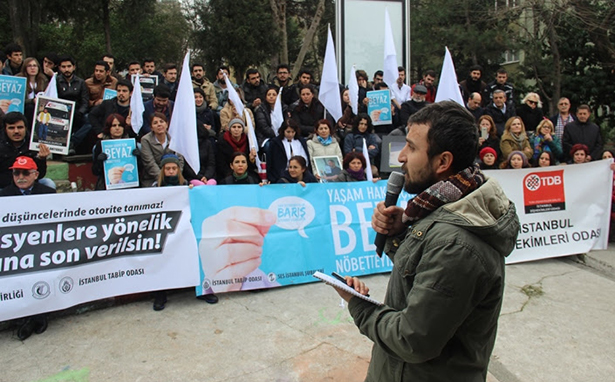İstanbul Tabip Odası Genel Sekreteri Dr. Samet Mengüç “Barış talebini dile getiren akademisyenler Başbakan, YÖK, medya ve paramiliter güçlerin baskılarına maruz bırakılmakta, bu akademisyenler kriminalize edilerek birer terörist gibi lanse edilmeye çalışılmaktadır. Süreç bir linç kampanyasına dönüştürülmüş durumdadır”dedi. Mengüç, bu insanlıkdışı durumu kabul etmeyeceklerini belirterek “Bizler asla susmayacağız, bedeli ne olursa olsun barış talebini haykırmaya devam edeceğiz. İstanbul Tabip Odası olarak akademisyenlerin imzaladığı metni biz de imzalıyoruz” dedi.