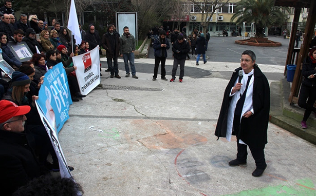 Dev Sağlık-İş Genel Sekreteri Gürsel Kaya ise “5 gündür burada, barış için nöbet tutuyoruz. Bu ülkede barış gelinceye kadar mücadeleye devam diyoruz. Tekellerinde bulundurdukları basınıyla, yandaşlarıyla, paramiliter güçleriyle, mafya güçleriyle insanları sindirmek diktatörlerin karakterinde vardır. Çünkü kendi düzenlerini yürütmenin başka bir yolu yoktur. Bugün bu ülkenin akademisyenlerini, düşünürlerini cezaevlerine koymak, gözaltına almak ancak diktatörlerin diktatörlüklerini sürdürmek için izledikleri bir yoldur. Ama bilsinler ki diktatörlükler yıkılmaya mahkumdur. Biz bir kez daha sesleniyoruz; bizler bu ülkeyi, bu ülkenin tüm insanlarını seviyoruz. Bu ülkeye barış gelinceye, bu ülkenin güzellikleri birlikte paylaşılıncaya kadar mücadeleye devam edeceğimizi duyuruyoruz” dedi.