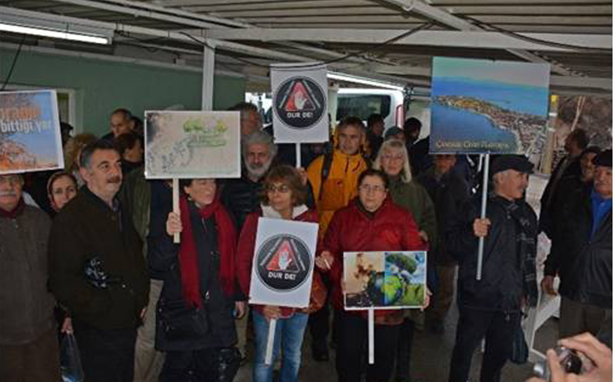 Düzenlenen ÇED toplantısına Çevre ve Şehircilik Bakanlığı görevlileri, şirket temsilcilerinin yanı sıra madende çalışan işçiler de getirildi. Şirket, toplantının yapılacağı kahvehane girişine koyduğu maden işçilerini toplantıyı engellemek için gelenleri içeri sokmaması için görevlendirdi. Toplanan maden işçileri Bergama, Dikili ve Çandarlı Çevre platformları üyeleri ve yöre halkının içeri girmesini engelledi. Jandarmanın da hazır bulunduğu toplantı yöre halkı ve yaşam savunucuları içeri giremeden sona erdi. Bunun üzerine yaşam savunucuları toplantıya alınmadıklarına dair tutanak tutarak şikayetçi olacaklarını ilan etti.