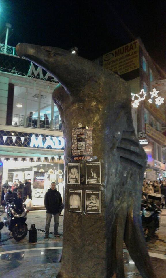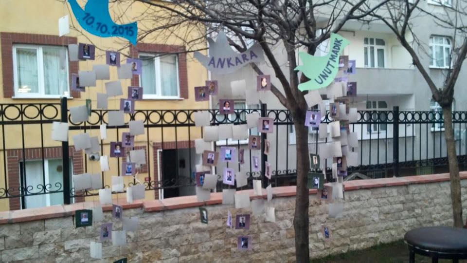 Beşiktaş Halkevi üyeleri, Ankara Katliamı’nda hayatını kaybedenlerin fotoğraflarını Beşiktaş sokaklarına astı.