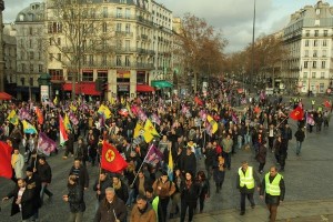 Yaklaşık 6 kilometre kent merkezinde yürüyen kitle, Bastille Meydanı’ndaki miting alanına geçti.