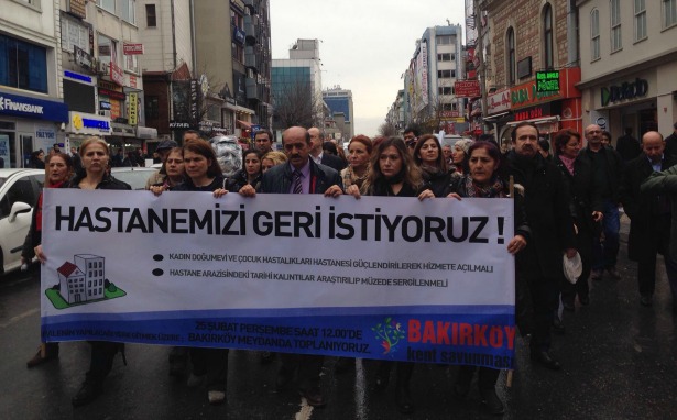Bakırköy Kadın Doğumevi ve Çocuk Hastalıkları Hastanesi arazisinin ihale ile satışa çıkarılmasına karşı Bakırköy Kent Savunması bugün (24 Şubat) eylemdeydi. Hastanelerini geri istediklerini belirten Bakırköylüler, herkesi hastaneye sahip çıkmaya çağırdı.