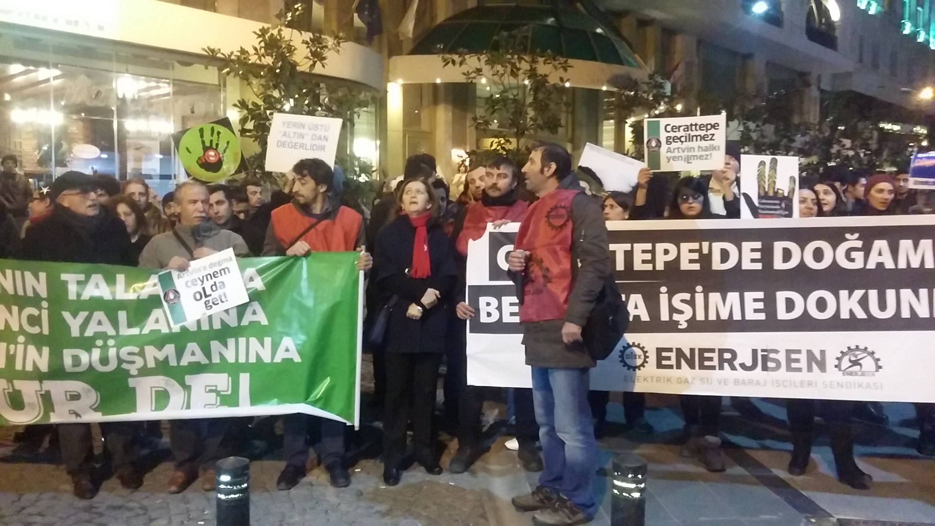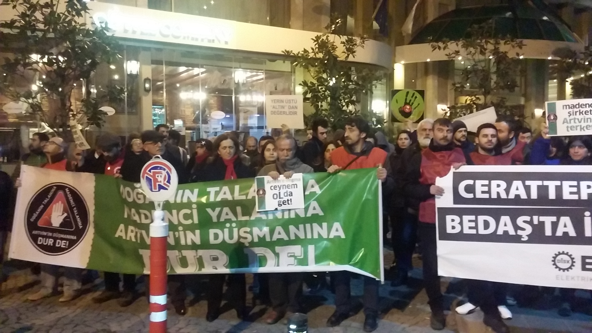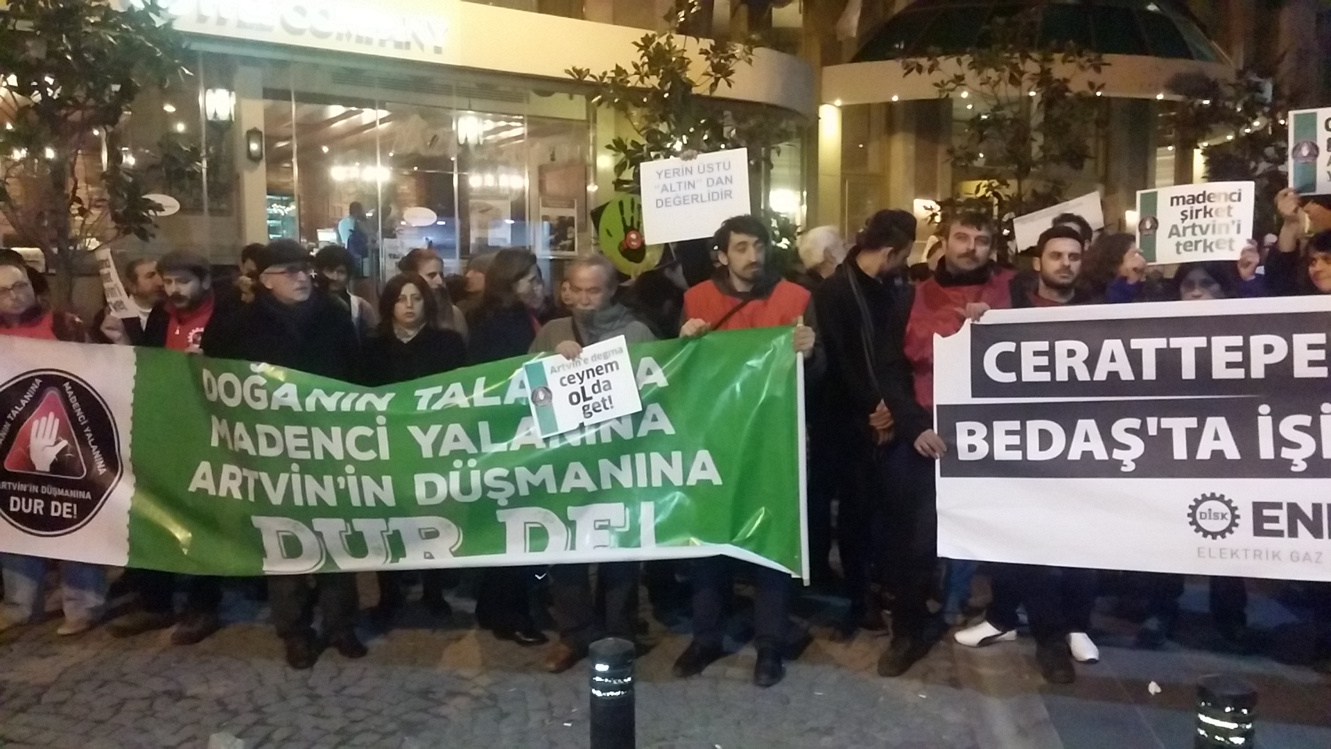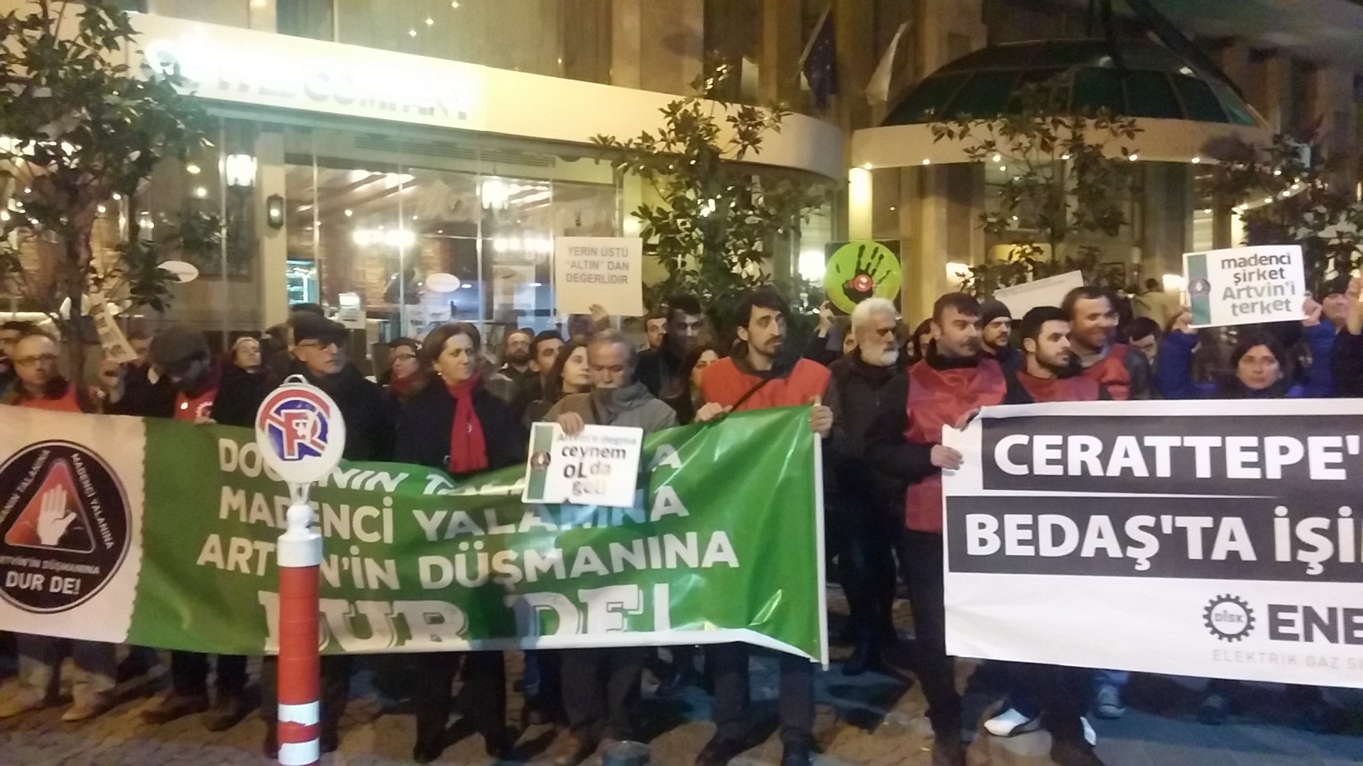Enerji işçilerinin çağrısıyla bir araya gelenler Artvin Cerattepe’de halka rağmen yapılmak istenen madene ve işten çıkarmalara karşı 18 Şubat’ta BEDAŞ önüne yürüdü. Yürüyüş boyunca Artvin’de direnenlere seslenen işçiler “Diren Artvin işçiler seninle”, “Siyanürcü şirket Artvin’i terket” sloganları attı. İşçiler adına ilk konuşmayı yapan Enerji-Sen Genel Sekreteri Süleyman Keskin Cengiz Holding’e seslenerek “İşçilerin hakkını yok sayan, işten atan Mehmet Cengiz’ e sesleniyoruz. Artvin’i hemen terkedin” dedi.