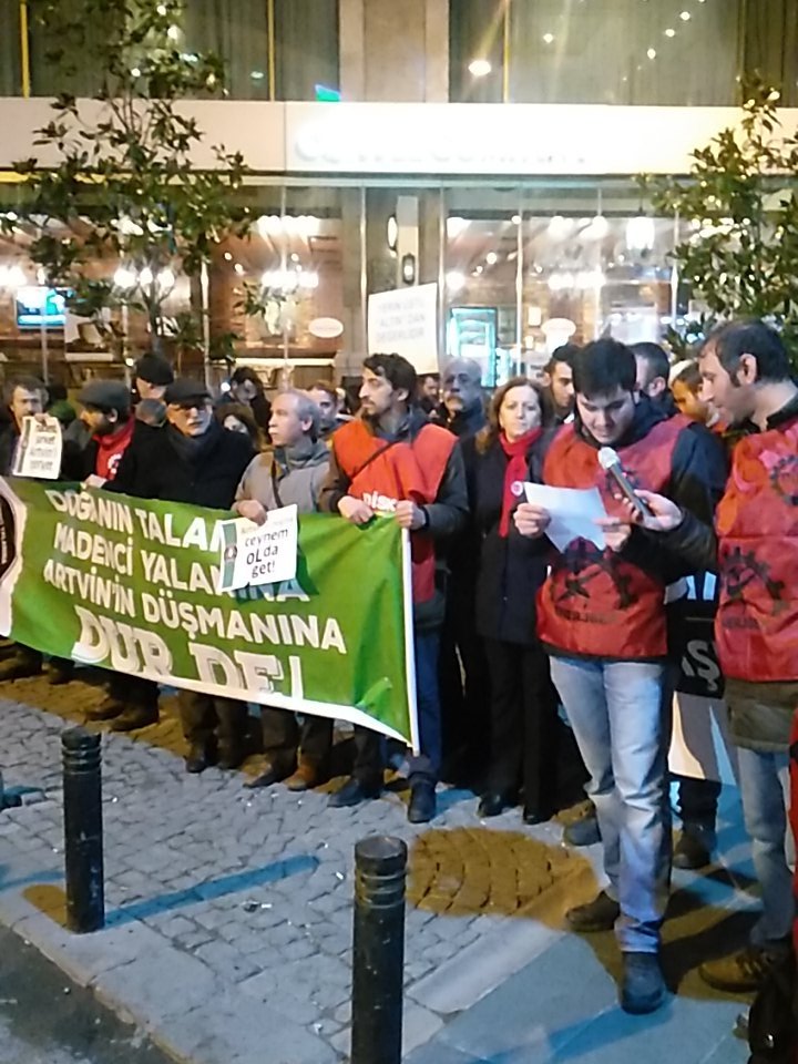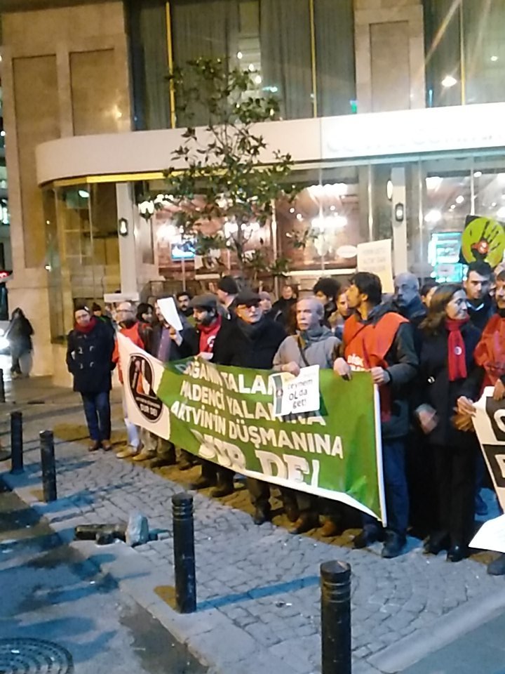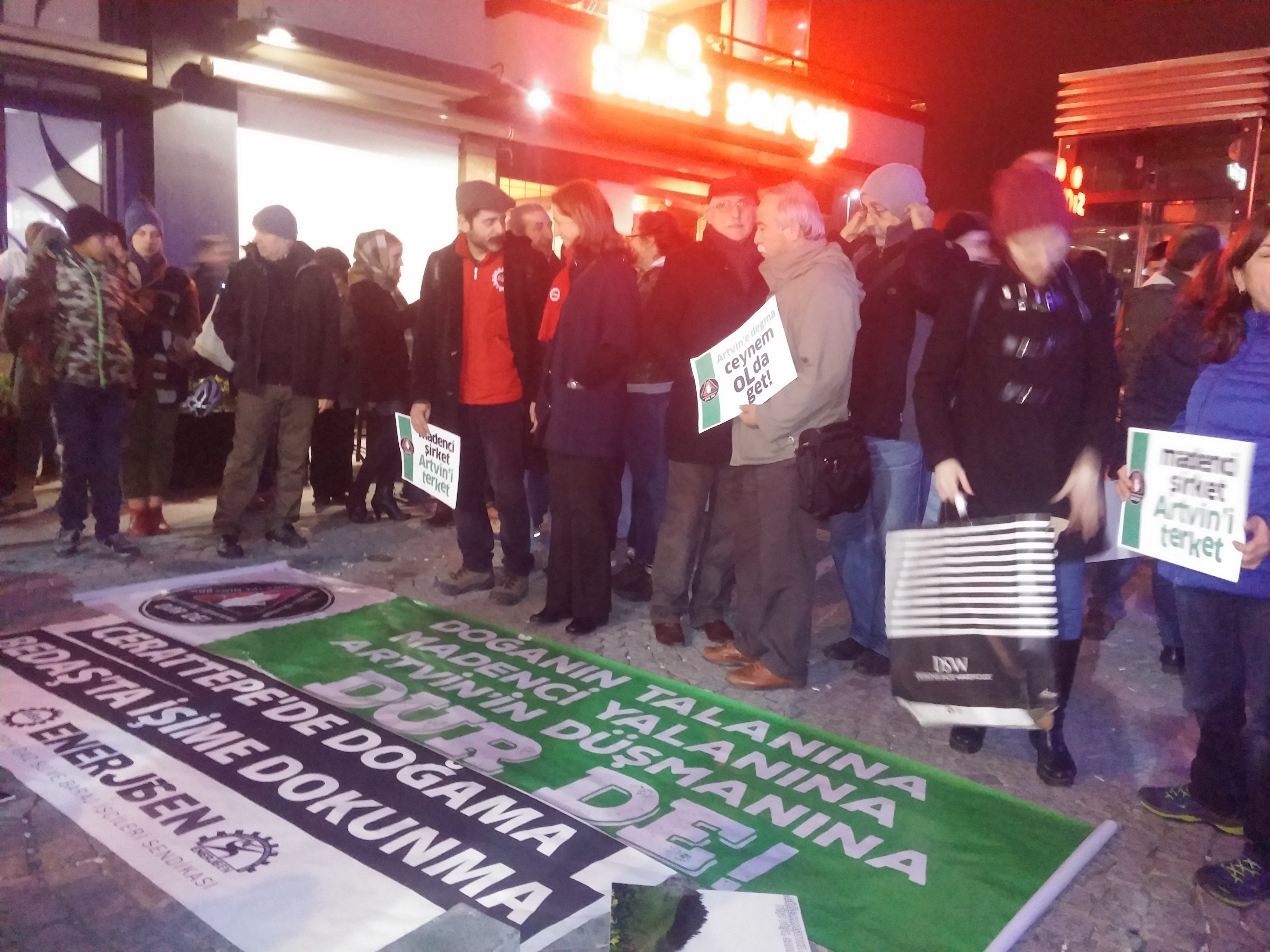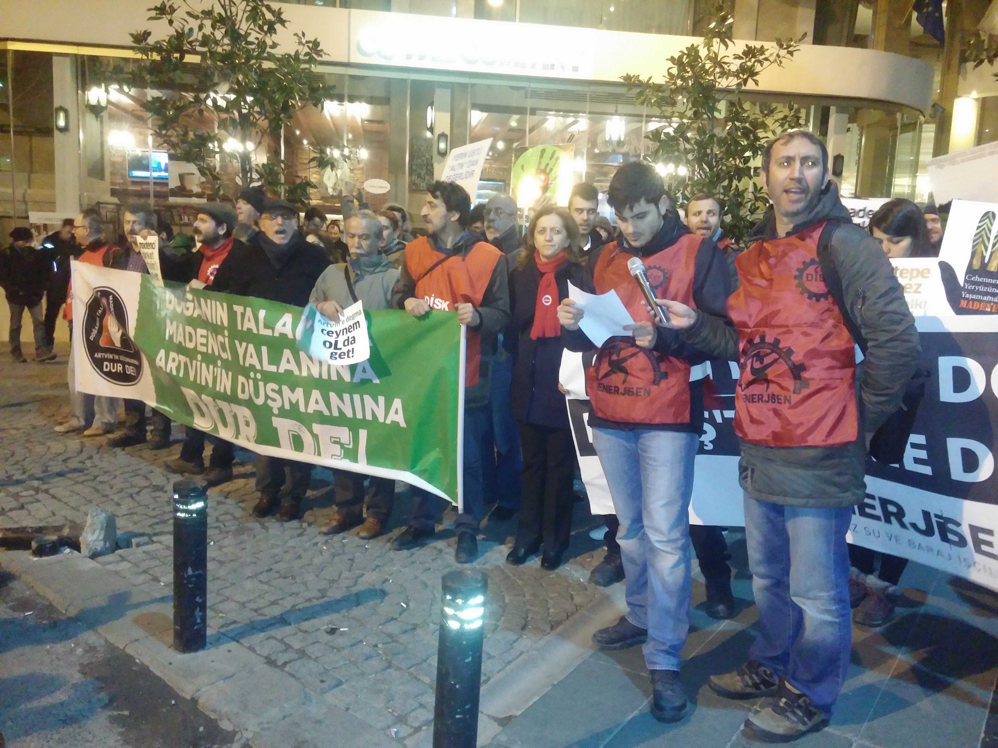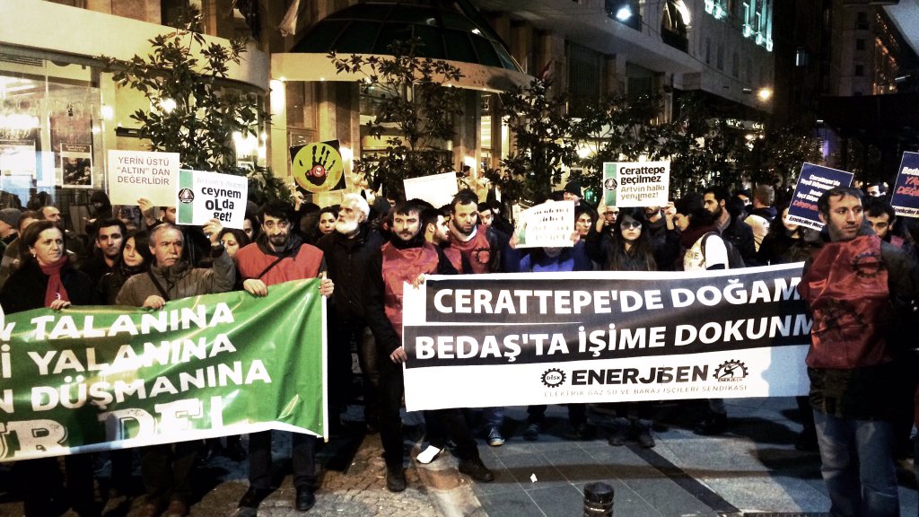 Enerji işçilerinin çağrısıyla bir araya gelenler Artvin Cerattepe’de halka rağmen yapılmak istenen madene ve işten çıkarmalara karşı 18 Şubat’ta BEDAŞ önüne yürüdü. Yürüyüş boyunca Artvin’de direnenlere seslenen işçiler “Diren Artvin işçiler seninle”, “Siyanürcü şirket Artvin’i terket” sloganları attı. İşçiler adına ilk konuşmayı yapan Enerji-Sen Genel Sekreteri Süleyman Keskin Cengiz Holding’e seslenerek “İşçilerin hakkını yok sayan, işten atan Mehmet Cengiz’ e sesleniyoruz. Artvin’i hemen terkedin” dedi.