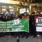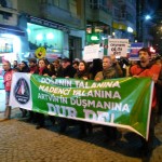 Eylemde konuşan DİSK Genel Sekreteri Arzu Çerkezoğlu konuşmasına Ankara’da dün yaşanan saldırıyı kınayarak ve Sur’da, Cizre’de, 10 Ekim’de Ankara’da, 20 Temmuz’da Suruç’ta yaşamını yitirenleri anarak başladı. Artvin’de madene, BEDAŞ’ta işten çıkarmalara karşı direnenlere seslenen Çerkezoğlu “Selam olsun direnen enerji işçilerine, selam olsun gecenin karanlığını yaşamın ışığıyla aydınlatanlara, selam olsun günlerdir Cerattepe’de Artvin’in her karış toprağında doğasına yaşamına sahip çıkmak için her türlü baskıya, dağa taşa yağdırılan gaz bombalarına rağmen direnenlere” dedi. AKP’ye ve Cengiz Holding’e de seslenen Çerkezoğlu, “Bu ülke Cengiz Holding’ e kalmaz. Sizin biber gazı stoklarınız ne Artvinlilere ne de işçilere yetmez” dedi.