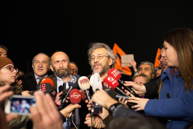 Türkiye’den Suriye’deki cihatçılara mühimmat taşıyan MİT TIR’larını haberleştirdikleri nedeniyle 3 Aralık 2015’te tutuklanan Cumhuriyet gazetesi Genel Yayın Yönetmeni Can Dündar ve Ankara Temsilcisi Erdem Gül hakkında 26 Şubat’ta tahliye kararı verildi. Dündar ve Gül’ün Anayasa Mahkemesi’ne yaptığı bireysel başvuruları Anayasa Genel Kurulu’nun 25 Şubat’taki oturumunda görüşülüp karara bağlandı. Kararın mahkemeye ulaşmasının ardından Silivri önünde heyecanlı tahliye bekleyişi başladı. Çok sayıda basın mensubu, demokratik kitle örgütleri, meslektaşları, CHP’li milletvekilleri ve Cumhuriyet gazetesi çalışanları Silivri’ye ulaştı.