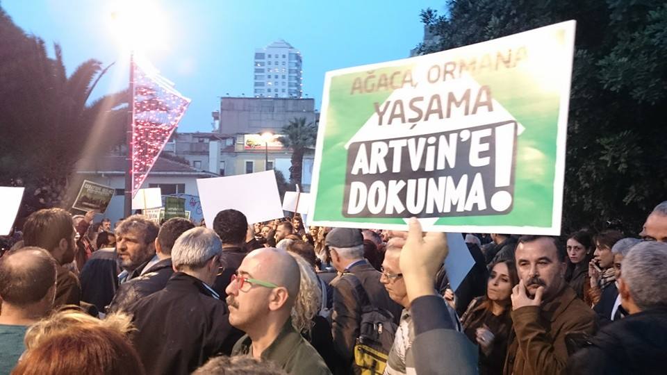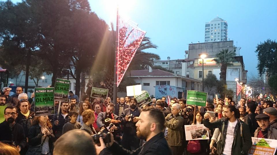 İzmirliler Cerattepe’ye destek için bir araya geldi. Horonlarla toplanan kitle, “Artvin halkı yalnız değildir” dedi.