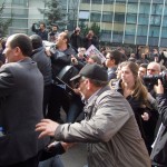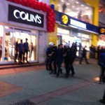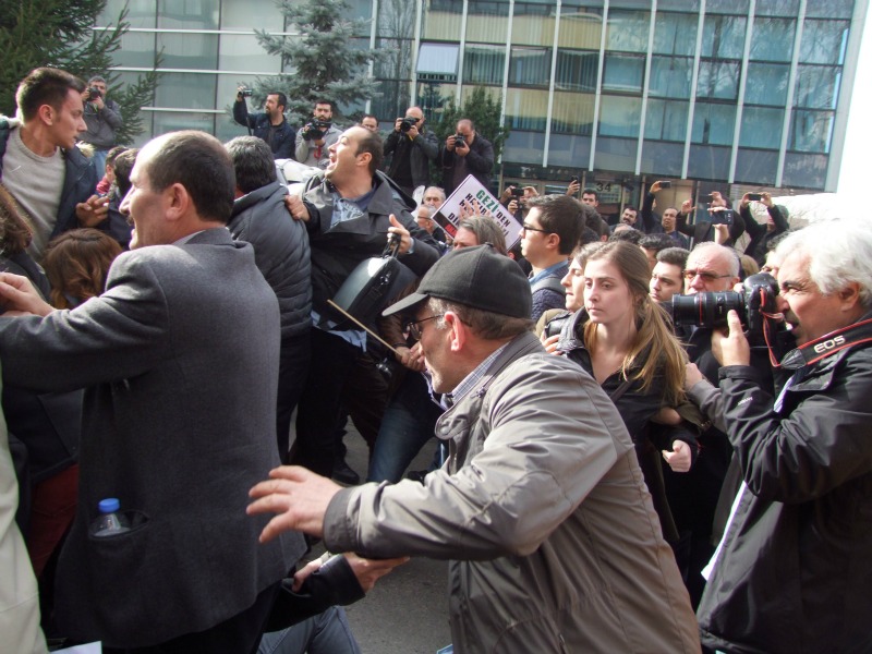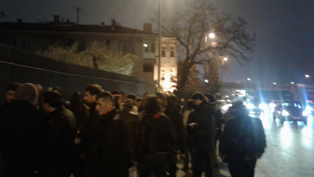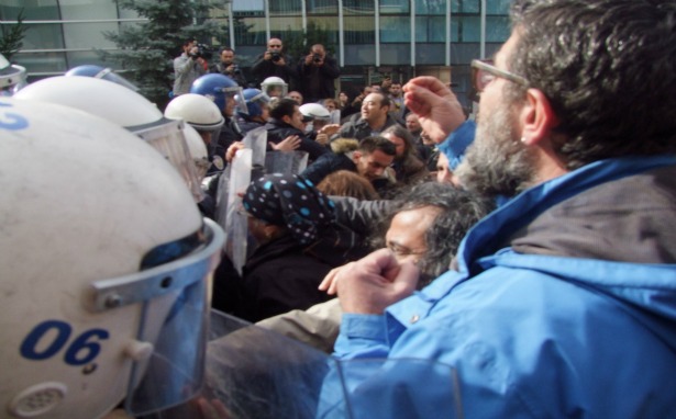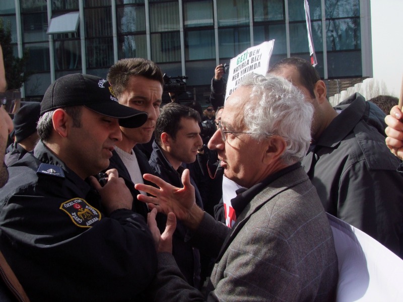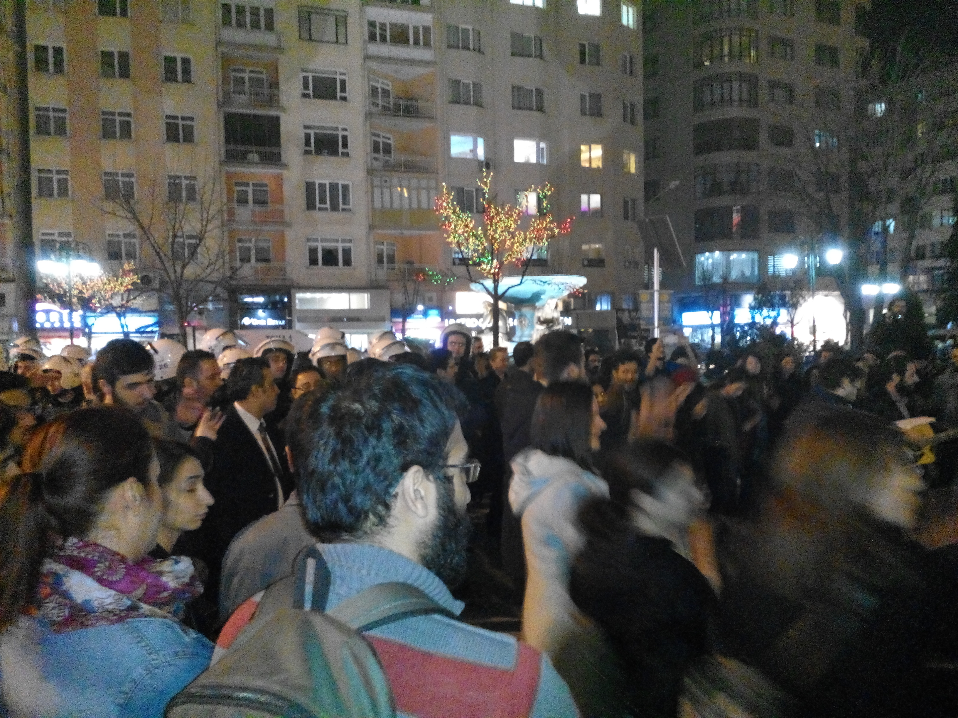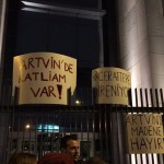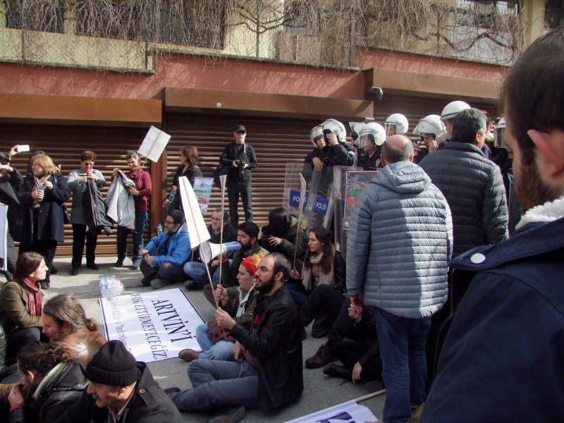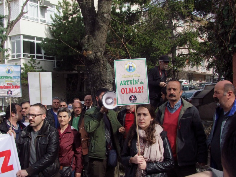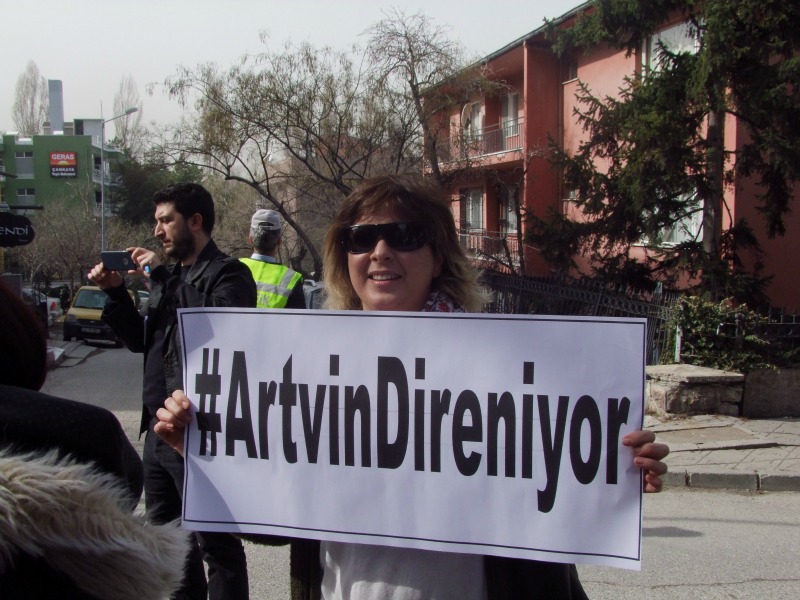 Ankara’da Artvin Kültür ve Dayanışma Derneği’nin çağrısıyla Cengiz İnşaat önünde toplanmak isteyen kitle şirketin önüne gelmeden polis barikatıyla karşılaştı. Barikat açılmadan eylemi bitirmeyeceklerini söyleyen kitle adına açıklama yapan Demir Akın, “Bugün Artvin’de savaş yaşanıyor. Biz barışı nasıl savunduysak Artvin’i de öyle savunacağız. Biz buradan bir yere gitmiyoruz siz Artvin’den defolup gideceksiniz” dedi.