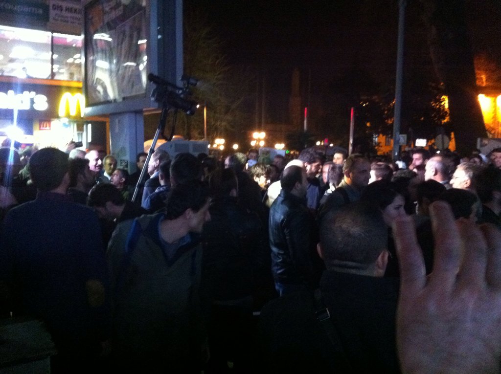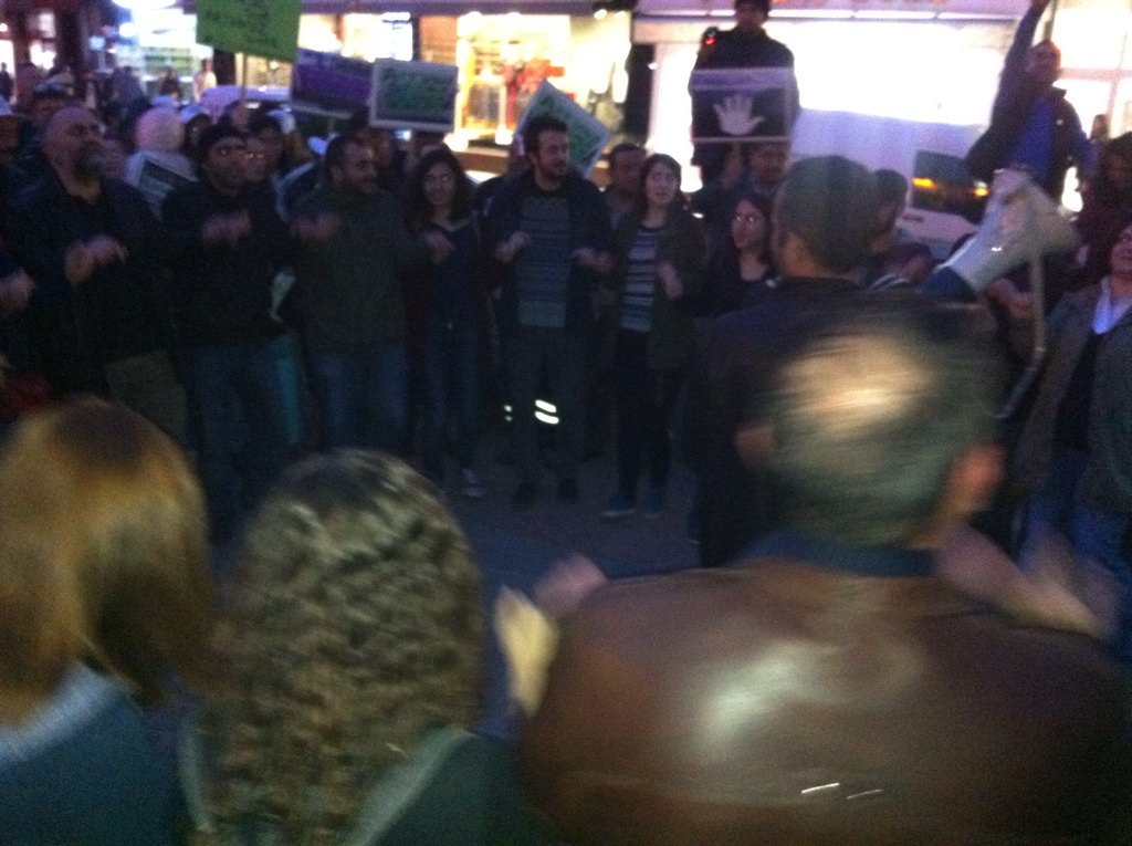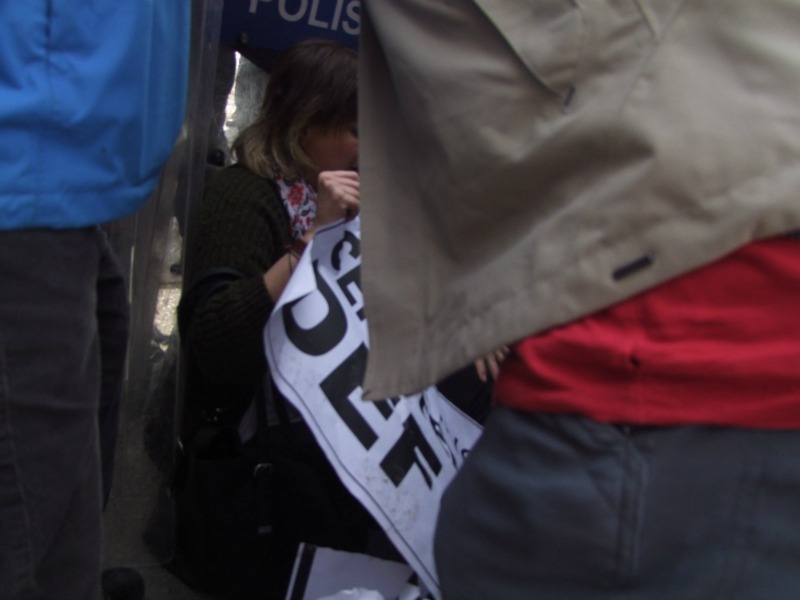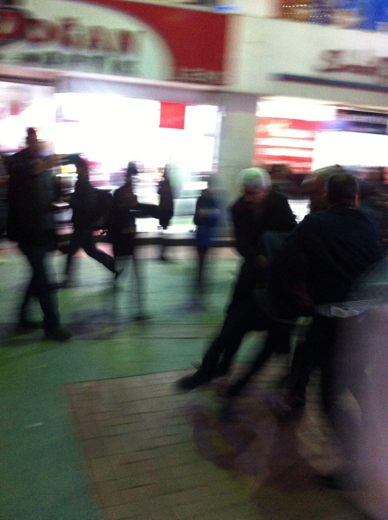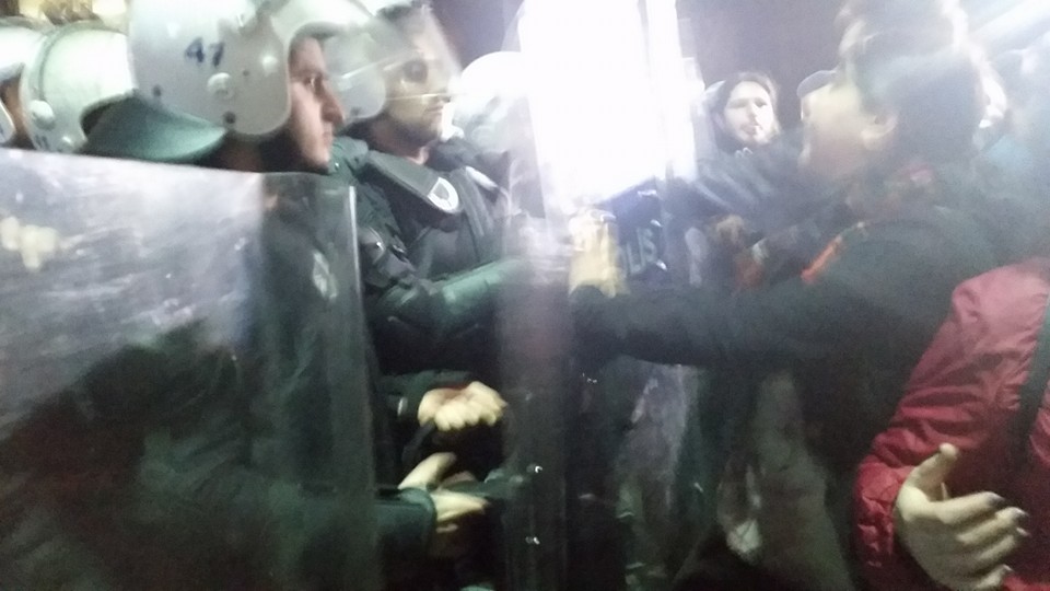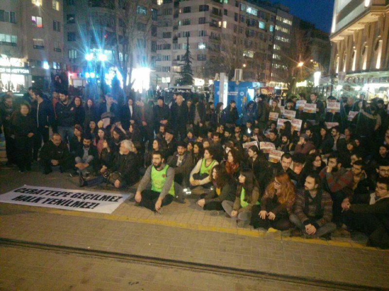 Kitlenin ısrarı üzerine polis barikatı geri çekilse de Cengiz İnşaat’ın önü açılmadığı için kitle oturma eylemine başlama kararı aldı. Oturma eylemini Carettepe’ye yapılan saldırılar son bulmadan bitirmeyeceklerini söyleyen kitleye bir süre sonra polis saldırdı. Biber gazıyla saldıran polise kitle alandan ayrılmayarak cevap verdi.