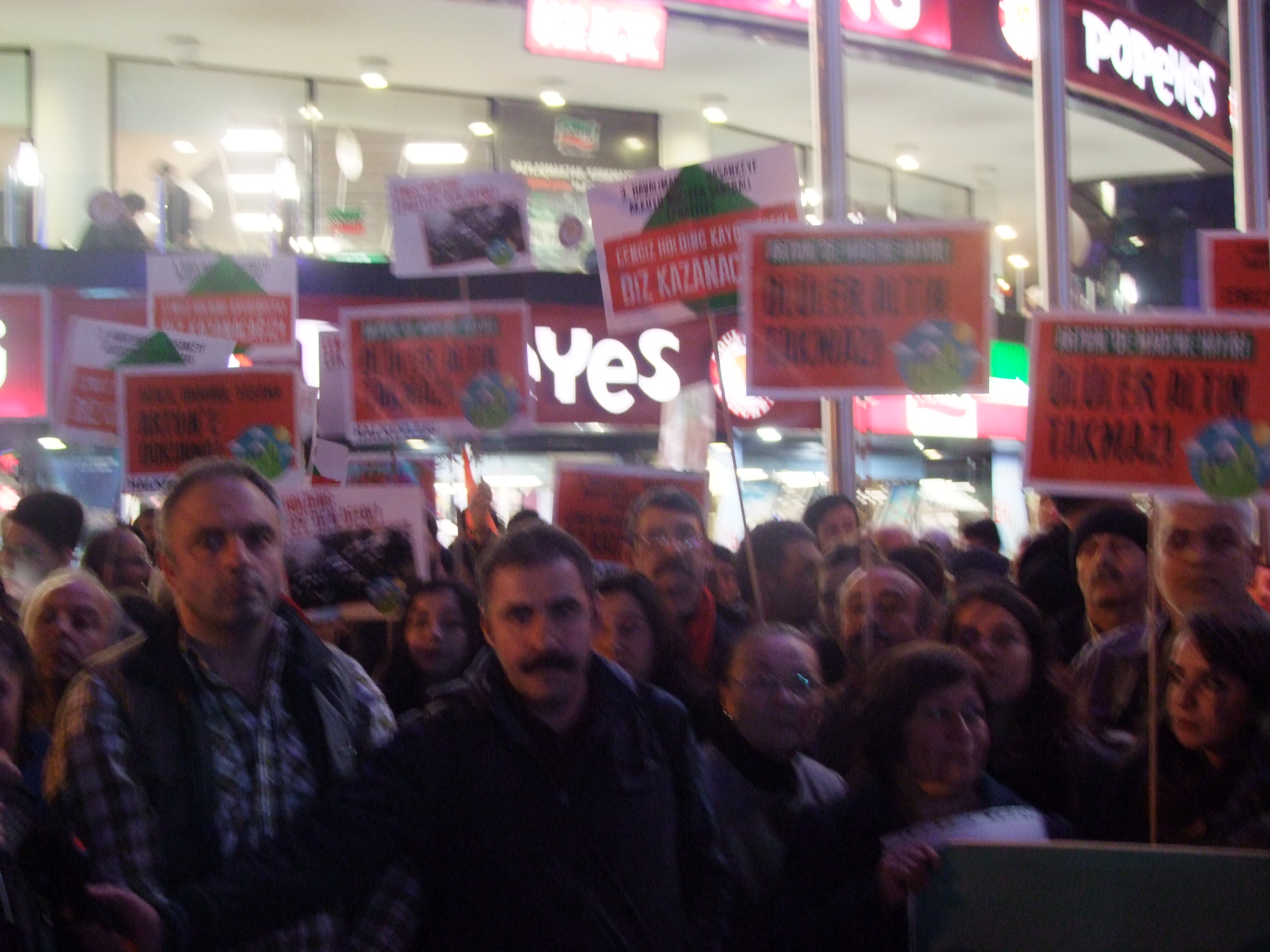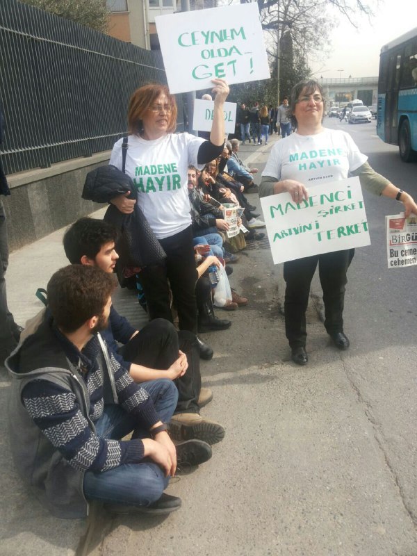 İstanbul Altunizade’de bulunan Cengiz Holding binası önünde buluşanlar oturma eylemi düzenledi. Saatlerce şirketin önünde oturanlar Cengiz Holding’in ve polisin bölgeye yönelik saldırısını protesto etti. Öğle saatlerinde başlayan oturma eylemi hala sürüyor. Cengiz Holding önüne çağrı yapılıyor. Holding önünde gün boyunca bekleyen yaşam savunucuları nöbetin Cerattepe’den maden belası gidene kadar süreceğini ifade etti.