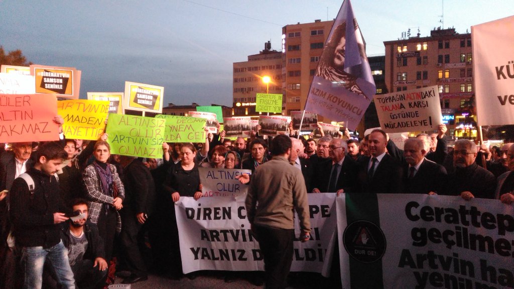 Ankara akşam da Cerattepe için sokaktaydı. Satt 18.00’da Kızılay AVM önünde Ankara Emek ve Demokrasi Güçleri’nin açıklamasında bir araya gelen Ankaralılar, “Cerattepe geçilmez. Artvin halkı yalnız değildir” dedi. Yüksel Caddesi’nden Kızılay AVM’ye yürüyenler ise, “Cerattepe için #AyağaKalk” dedi.