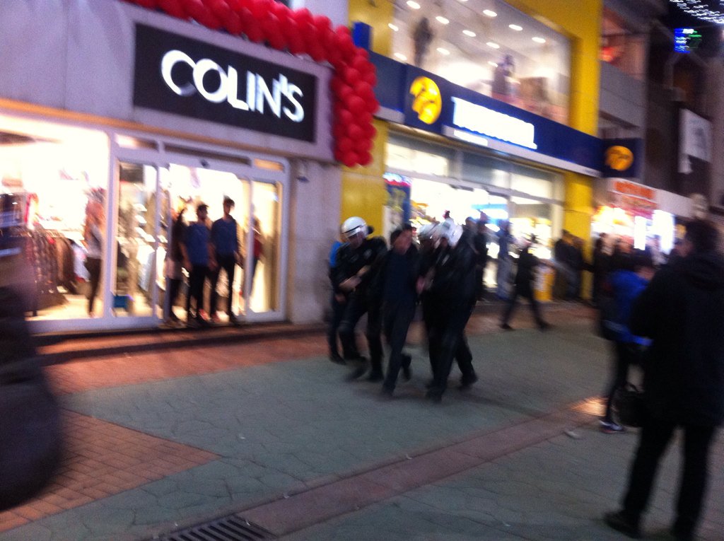 Polis saldırısında 11 kişi gözaltına alınırken, gözaltına alınanlardan bir kişinin kolu kırıldı.