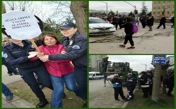 Kocaeli’de belediyenin ağaç kıyımına karşı Yahya Kaptan halkı nöbete başlamıştı. Belediye ekipleri bugün polislerle birlikte nöbet tutan halka saldırdı, 10 kişi gözaltına alındı. Gözaltılar serbest bırakıldıktan sonra gözaltına alınanlar ağaç kıyımına karşı nöbete tekrar devam ettiler. Belediye ekiplerinin ağaç kesme girişimi Yahya Kemal halkı tarafından bir kez daha engellendi