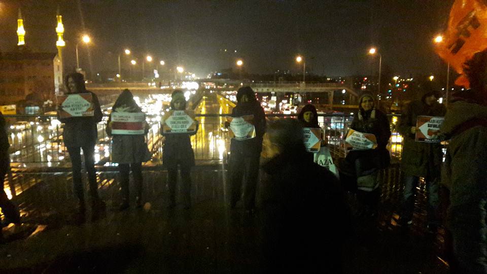 Mecidiyeköy metrobüs durağında ulaşıma, elektriğe ve doğalgaza yapılan zamlarla savaşın faturasının halka kesildiği ifade edilerek bildiri dağıtılırken, Ümraniye’de ise “Zamlara karşı ayağa kalk” denilerek eylem yapıldı. “AKP iktidarı asgari ücreti 1300 liraya çıkardık diye her yerde propaganda yaparken aslında ulaşıma, doğalgaza, elektiriğe zamlar yaparak kaşıkla verdiğini kepçeyle geri alıyor” diyen Halkevcilere halk alkışlarla destek verdi.