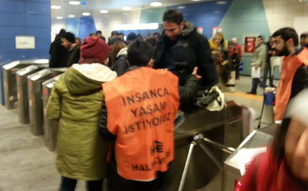 Halkevciler, İstanbul’da Mecidiyeköy ve Avcılar metrobüs durakları, Kadıköy metrosu ve Ümraniye’de ulaşıma yapılan zamları protesto etti, turnikelerden atlayarak parasız ulaşım hakkına sahip çıkmaya çağırdı