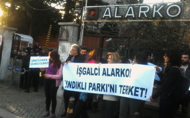 “İşgalci Alarko, Fındıklı Parkı’ndan defol” yazılı pankartının açıldığı eylemde, “Fındıklı parktır, park kalacak”, “Ağaç katili Alarko” sloganları atıldı.
