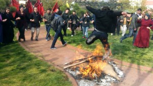 1 Mayıs Mahallesi polisin engellemesine rağmen Newroz ateşini Şükrü Sarıtaş Parkı’nda yaktı. ESP, HDP, SODAP, Köz ve Partizan üyeleri parkın etrafına polisin gelişini engellemek için barikat kurdu. Newroz ateşinin etrafında halaylar çekildi.