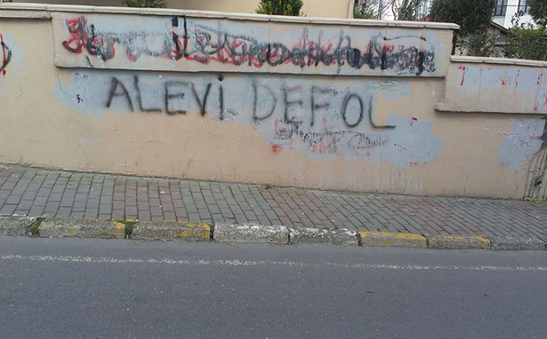 İstanbul Sarıyer’de Alevilerin yoğunlukla oturduğu bir mahalle olan Ömürtepe’de duvarlara mezhepçi yazılama yapıldı. Mahallenin otobüs güzergahında olan iki ayrı duvara “Alevi defol” yazılırken bir tanesi mahalleli tarafından silindi.
