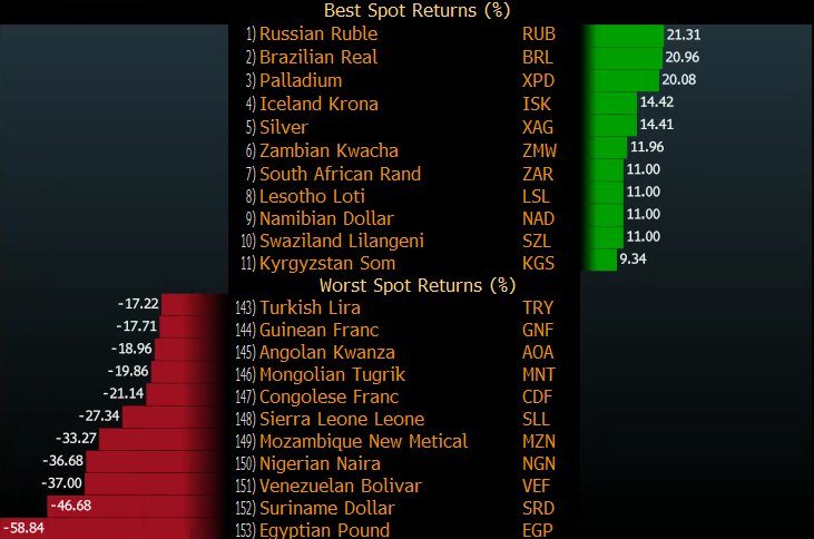 Nasıl “yükselen piyasalardaki” hızlı büyüme ülkeler arasında dengeli bir şekilde gerçekleşmediyse, “düşüş” de eşitsiz bir şekilde yaşanıyor. Örneğin 2016’daki getirilerin gösterildiği yukarıdaki tabloya göre Rusya ve Brezilya’nın para birimleri dolara karşı değer kazanırken Türkiye, en çok kaybedenler listesinde. Dolayısıyla “yükselen piyasalar” homojen bir kategori olmadığı gibi, bu ülkelerin düşüşü de farklılaşarak gerçekleşiyor. Hatta bazıları gerilerken (net ithalatçılar) bazıları kısa dönemde de olsa kazançlı çıkabiliyor (net ihracatçılar). Kesin olan ise, hiçbirinin “çifte çöküşten” kaçınamayacağı gerçeği.
