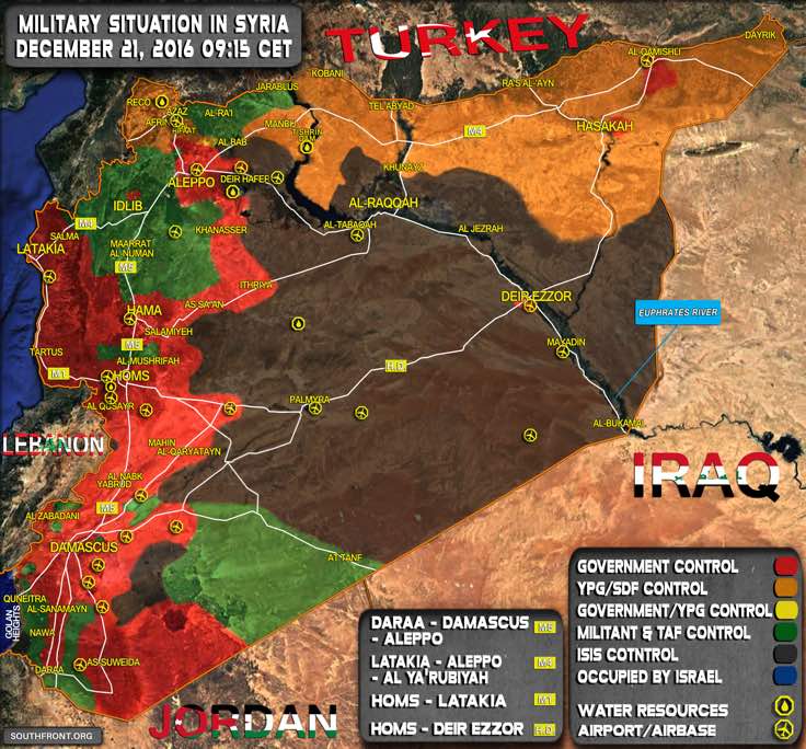 Suriye uzun vadeli olduğunu çok iyi bildiği savaşta kendi iradesi doğrultusunda öngördüğü çözüme bir adım daha yaklaştı. Kürtler ile igili durum ne getirir bilinmez ama diğer örgütler ile mücadele artık bitme sürecine girdi. Muhtemelen 2017 sonunda bu örgütler tamamen marjinalleştirilmiş ya da yok edimiş olacaklar.
