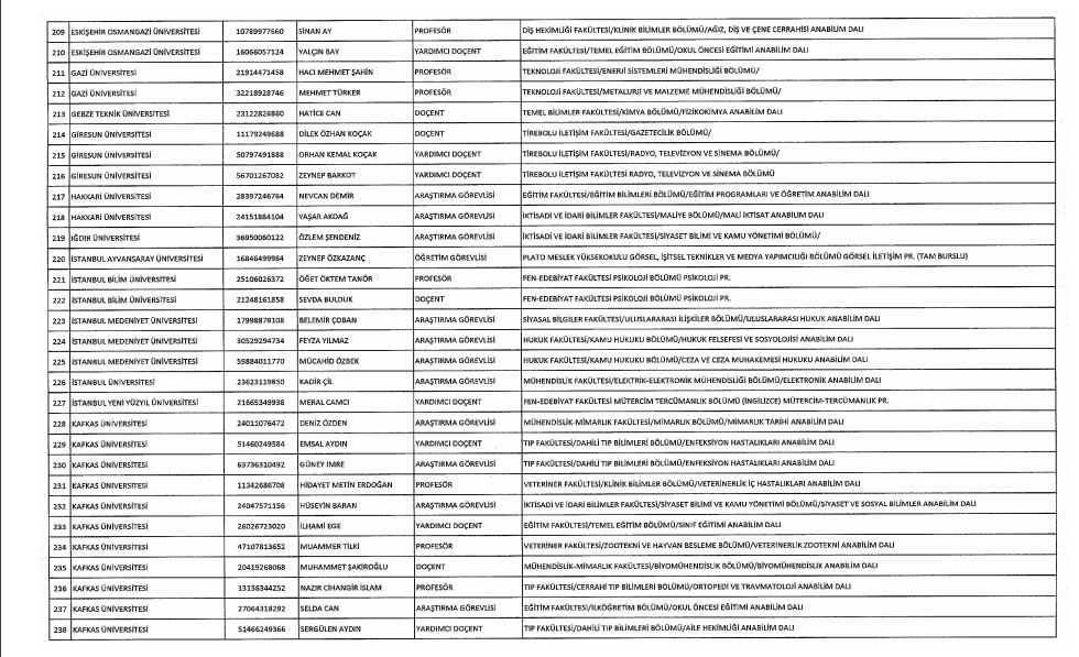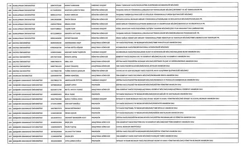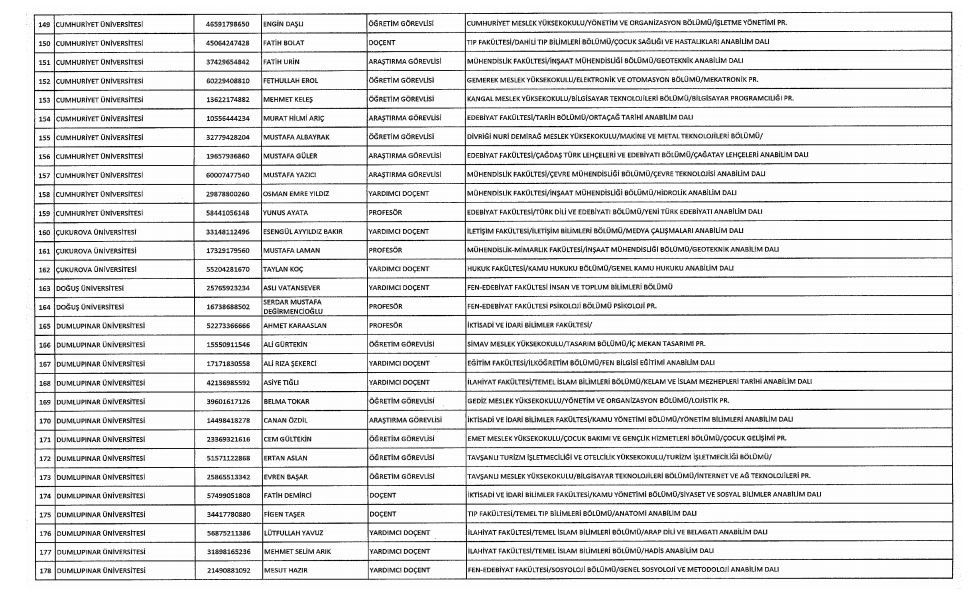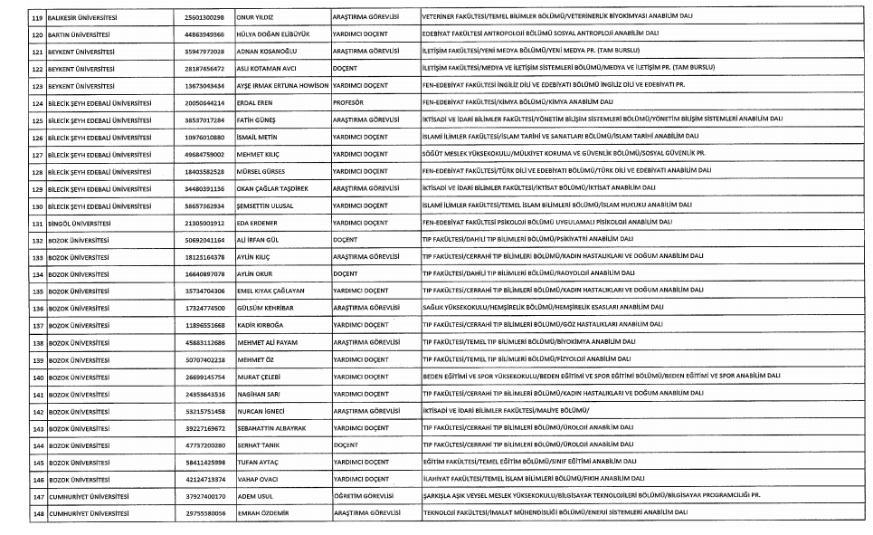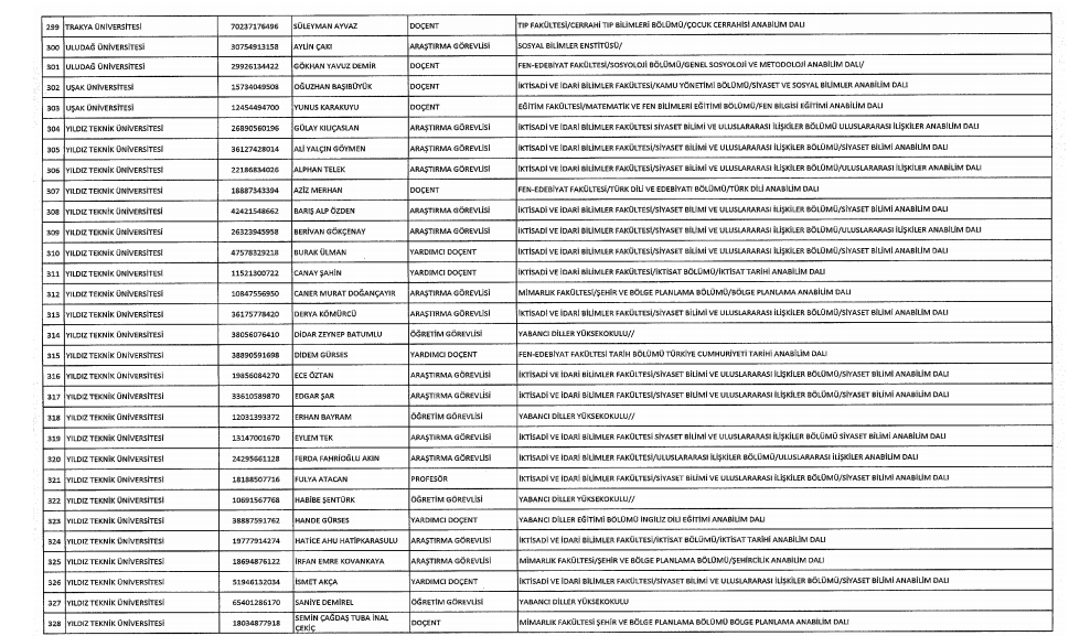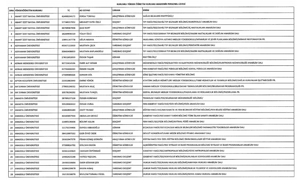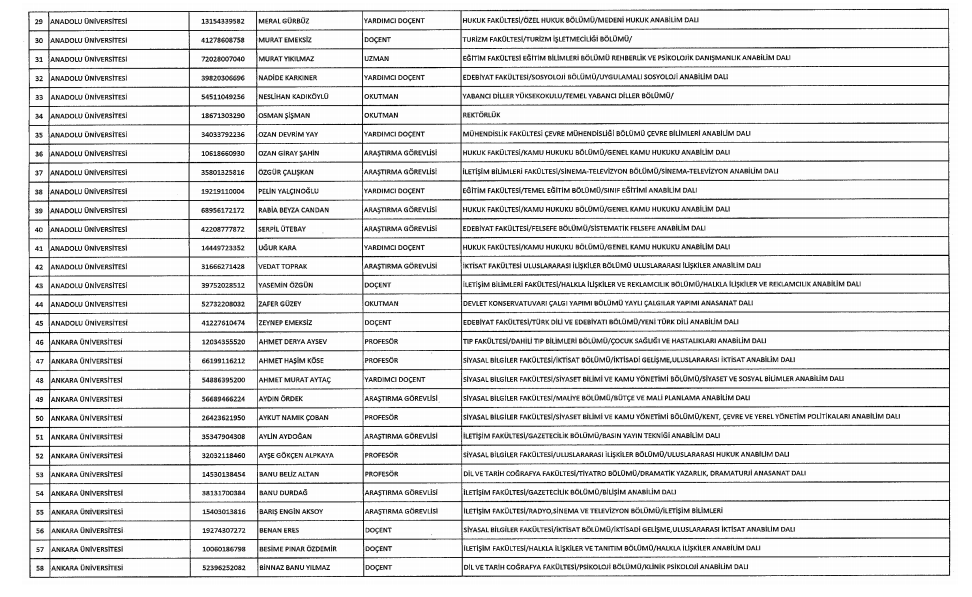 Üniversitelerden ihraç edilen 330 akademisyenin listesi: