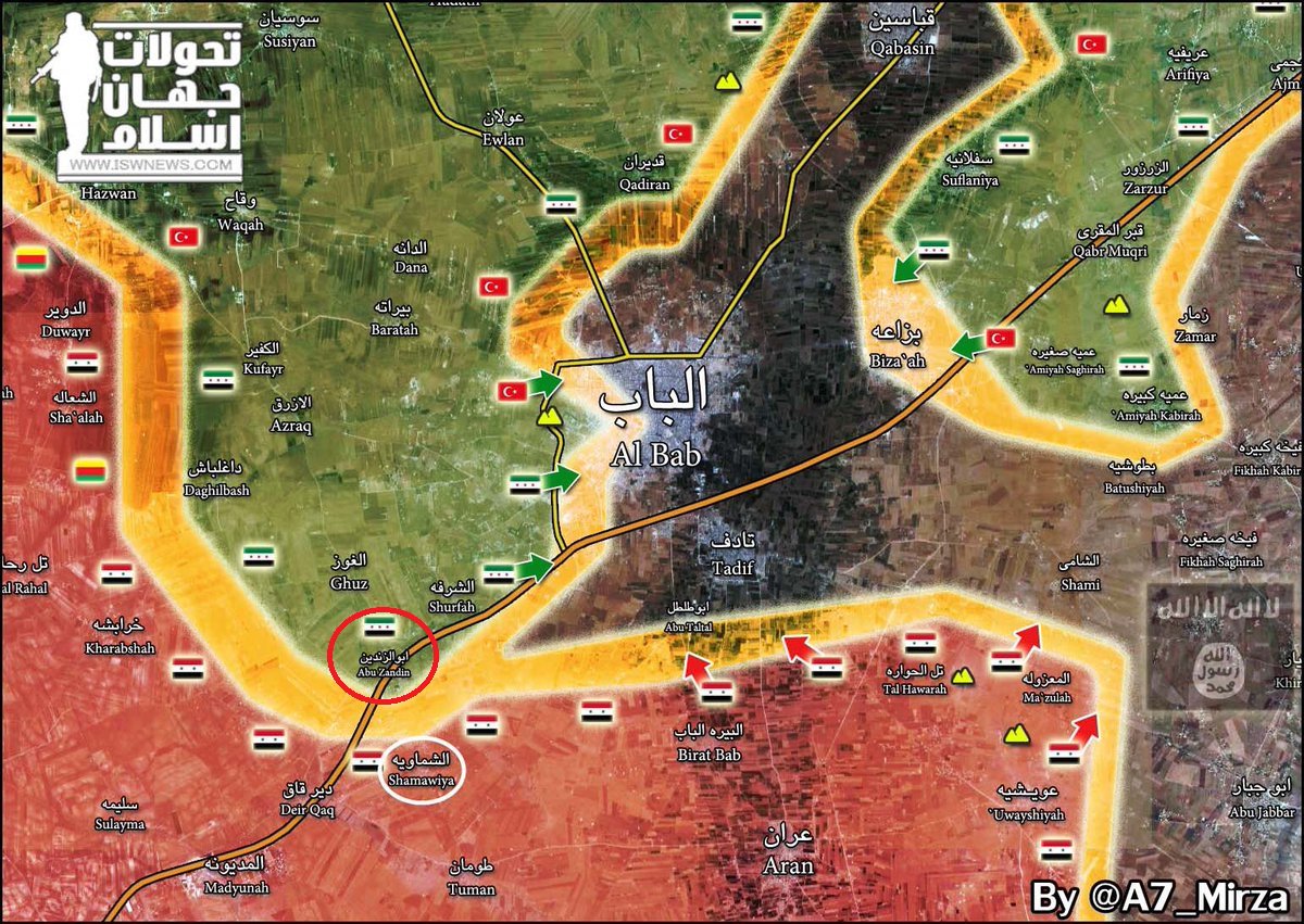 Bu arada Suriye ordusu da El-Bab’ın güneybatısındaki Zıdeyn köyünü kontrol altında tutan TSK destekli ÖSO unsurlarına karşı atağa geçti. Fırat Kalkanı Operasyonu kapsamında hareket eden ÖSO unsurları, Suriye ordusu kontrolündeki bölgelerden Bab’a uzanan yolda yer alan köyleri kontrol altına almıştı.