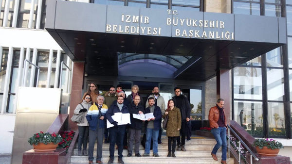 İzmir Büyükşehir Belediyesi’nin Kültürpark’ı tahrip edecek proje hazırlamasına ve Kültürpark’ın yanında bulunan Basmane Çukuru’na AKP’li Mesut Sancak’ın imar usulsüzlüğüyle gökdelen projesi hazırlamasına karşı mücadele devam ediyor. Dün (1 Şubat) İzmir Büyükşehir Belediyesi önünde bir araya gelen İzmirliler, Kültürpark için hazırlanan yenileme projesine karşı toplanan 5 bin imzayı teslim etti. Eyleme Kültürpark’ın bisikletli misafirleri, koşucuları, Basmane esnafları, Karabağlar-Uzundere’de rantsal dönüşüme karşı direnen dernek temsilcileri de katıldı. Kültürpark Platformu’nun çağrısıyla düzenlenen açıklamada, İzmir Büyükşehir Belediyesi’nin halkın Kültürpark’a dokunma talebini yok saydığı vurgulandı.