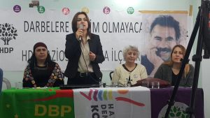HDP PM üyesi Gülsen Ülker de yaptığı konuşmada, referanduma dikkat çekerek, 8 Mart alanlarında diktatörlüğe “Hayır” diyeceklerini söyledi.